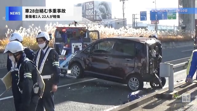車28台絡む多重事故 重傷者2人含め、24人負傷 愛知・小牧