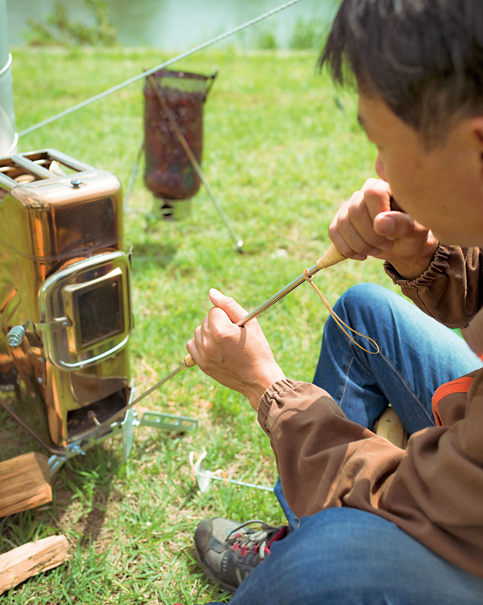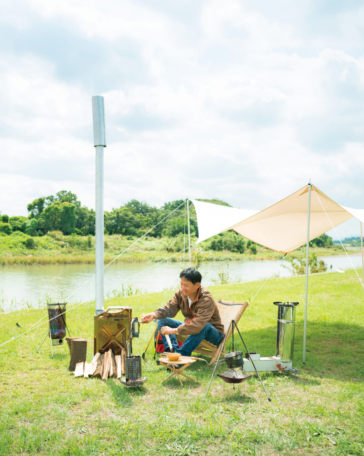 きっかけは趣味の竹細工で大量に出る端材をエネルギーに変換するため。手始めに小さなロケットストーブを作り、その後は薪ストーブ、焚き火台……、気づけば数々のアウトドア用の燃焼アイテムを自作していた。