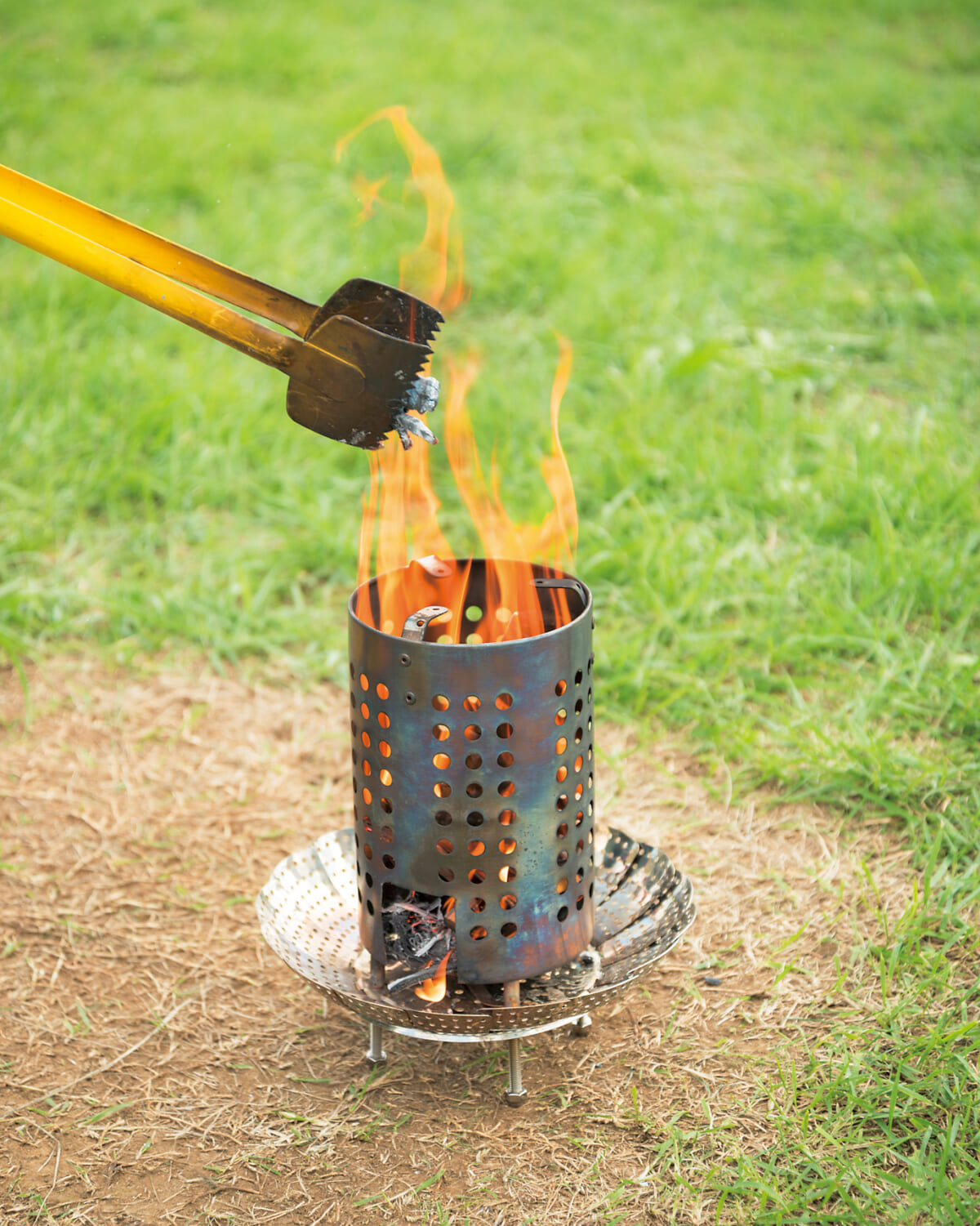 キッチンアイテムで作る縦型のモバイル焚き火台