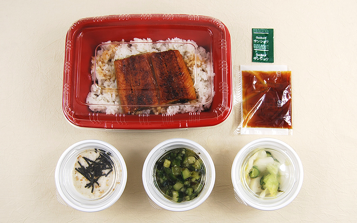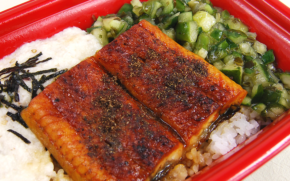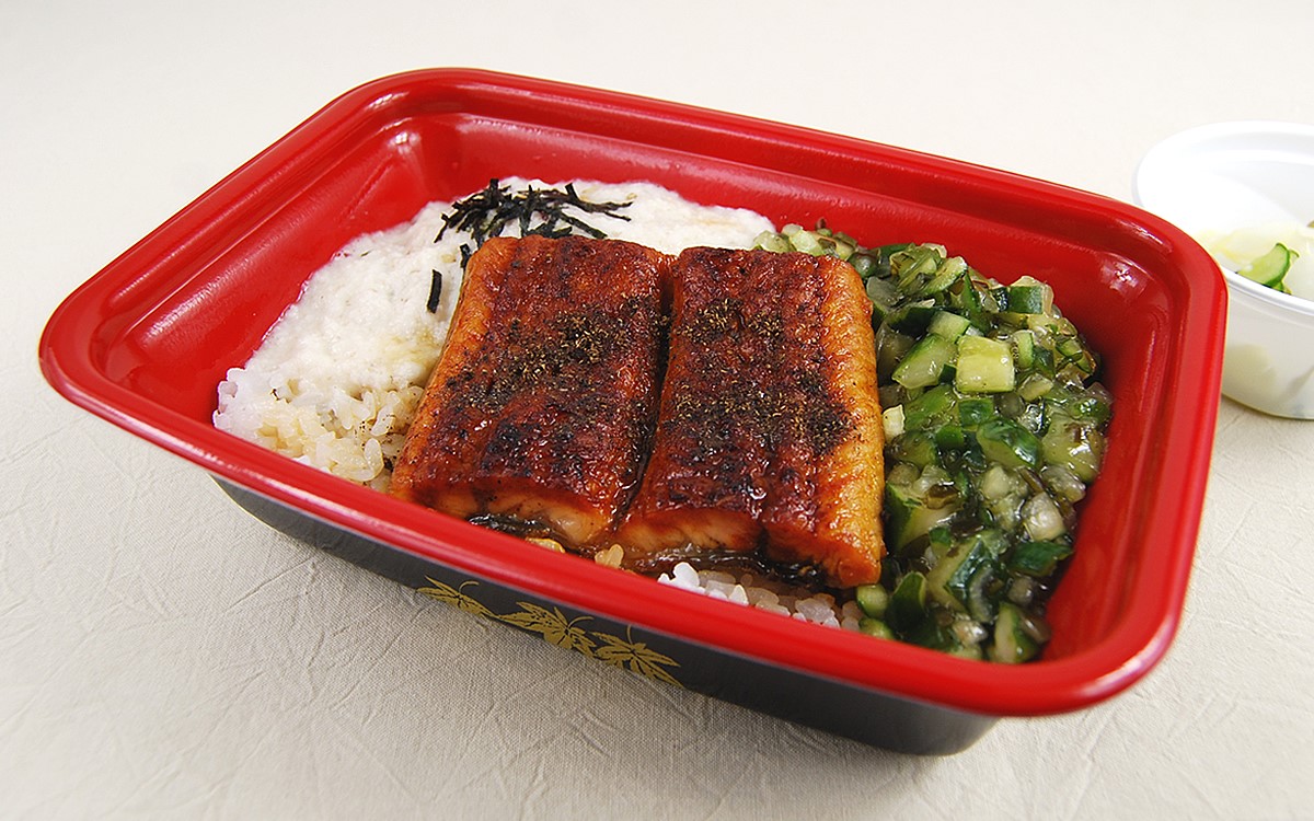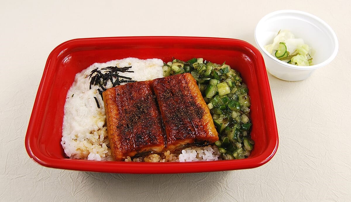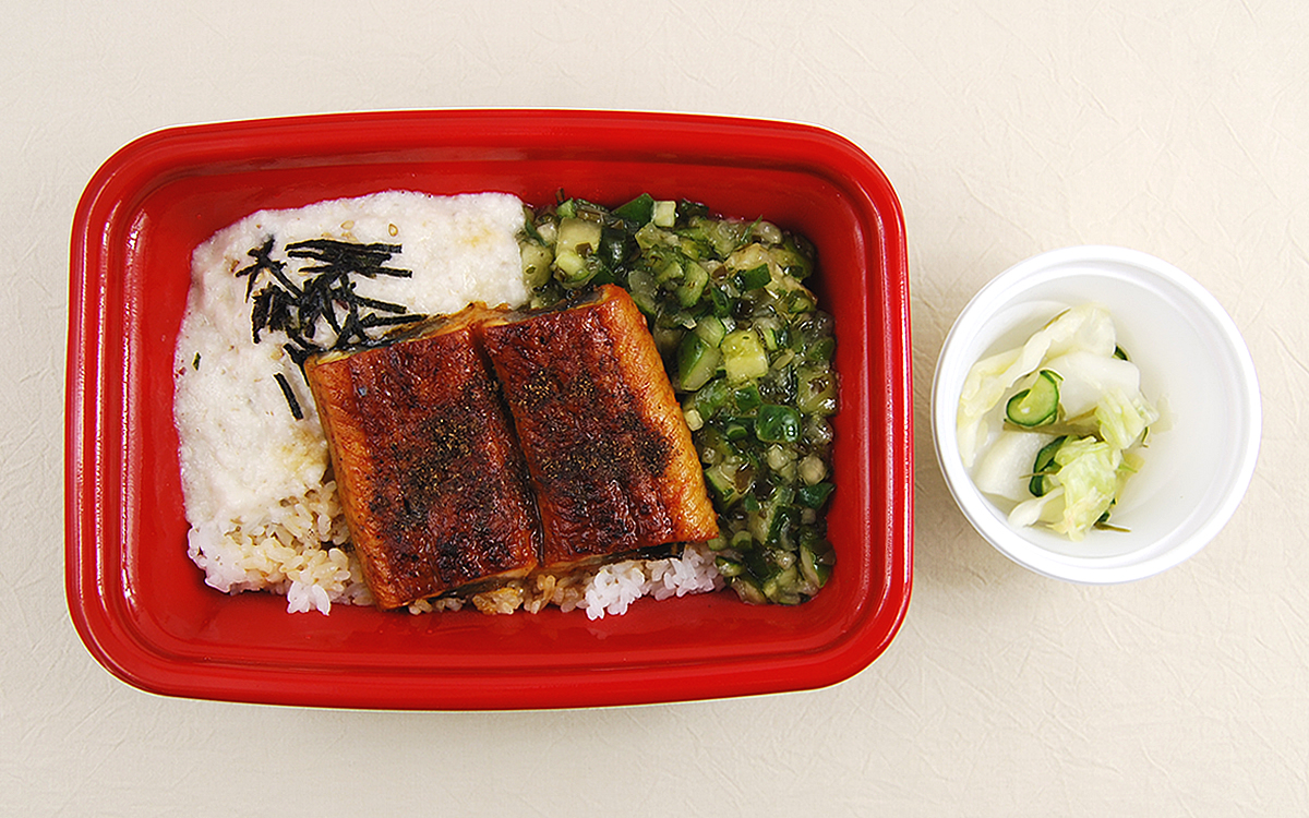 ご飯の上に「うなぎ」「山形だし」「国産とろろ」の3つを盛りつけて食べる同商品。ちなみに「山形だし」とは、胡瓜・茄子・みょうが・青じそ・長ねぎなどを細かく刻んで醤油で和えたものです。山形の郷土料理で、ご飯の上に乗せて食べるのが一般的。こってり甘く味つけされたうなぎとの相性も気になります。