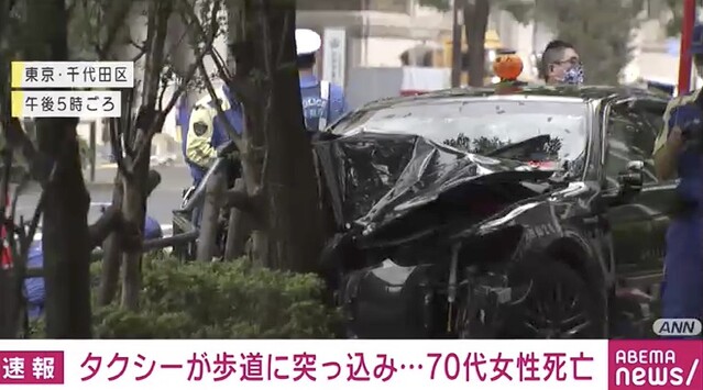 11日、東京・千代田区でタクシーが歩道に突っ込み、6人がケガをした事故で、意識不明だった70代女性の死亡が確認された。