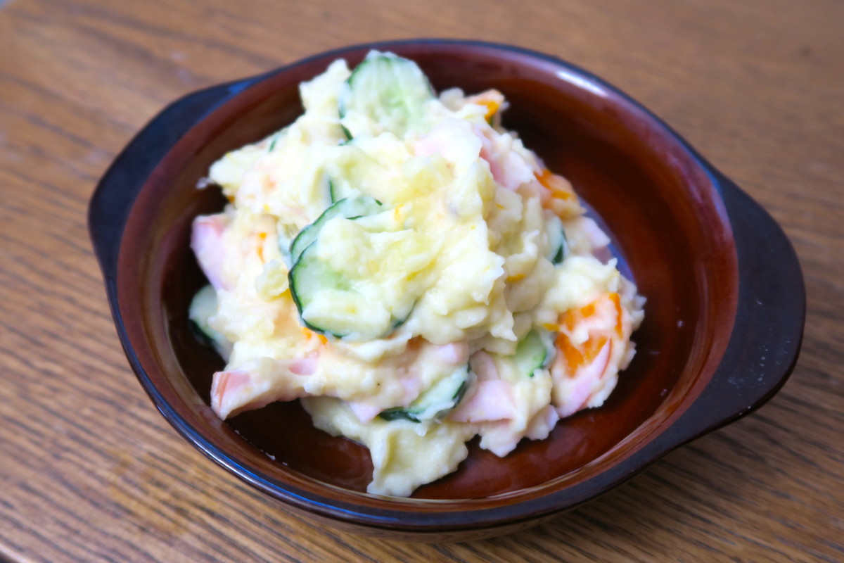 自家製のポテトサラダ作りが、材料をカットするだけでほぼ終わると考えると、なかなかすごいかも。にんじんと玉ねぎの火の通り具合も申し分ありません。お鍋ひとつで調理が完結できるので、洗い物が少なく済むのもうれしいポイントです。