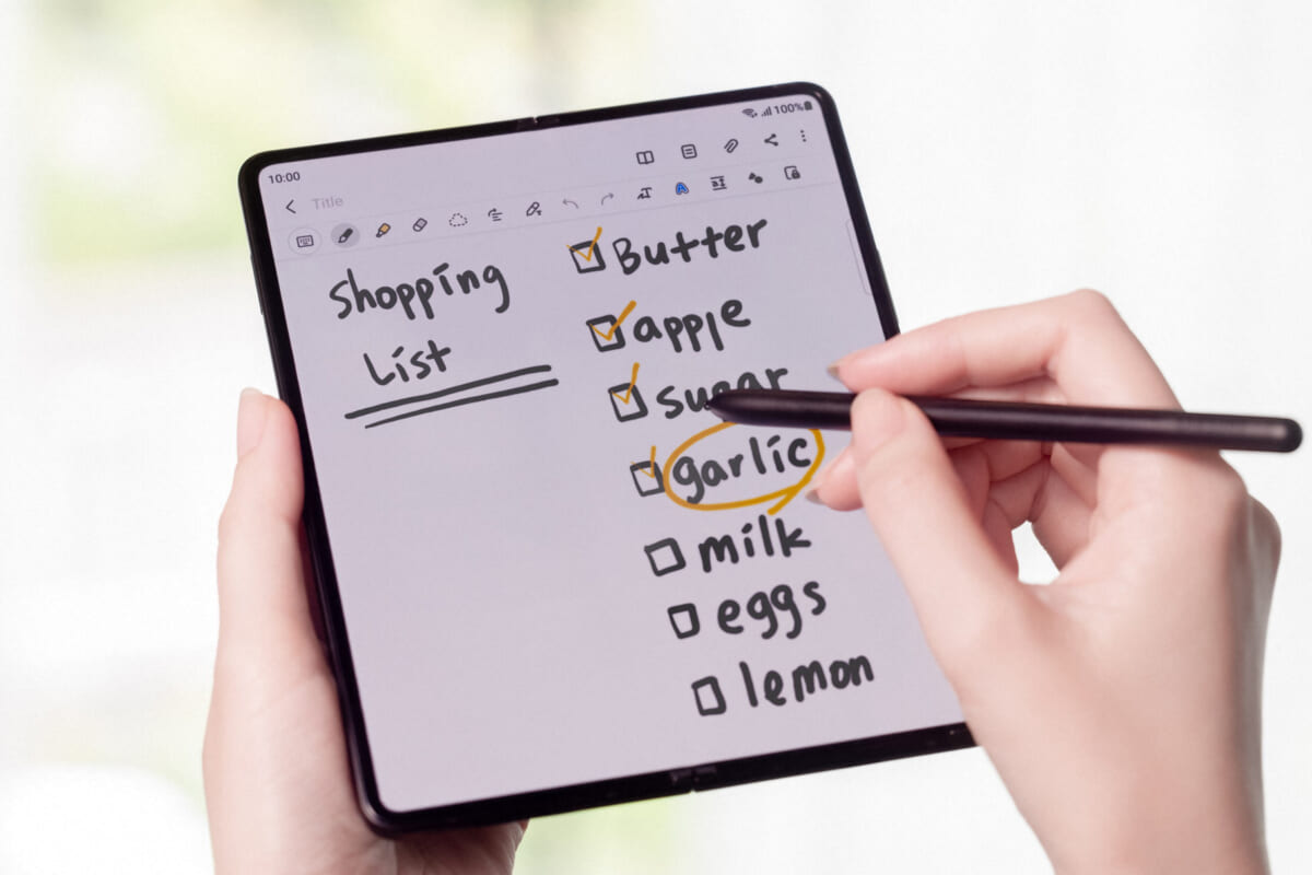 Galaxy Z Fold3 5Gのもう一つのトピックがSペンへの対応です。Galaxy Noteシリーズで人気を博してきたスタイラスが使えるようになりました。
