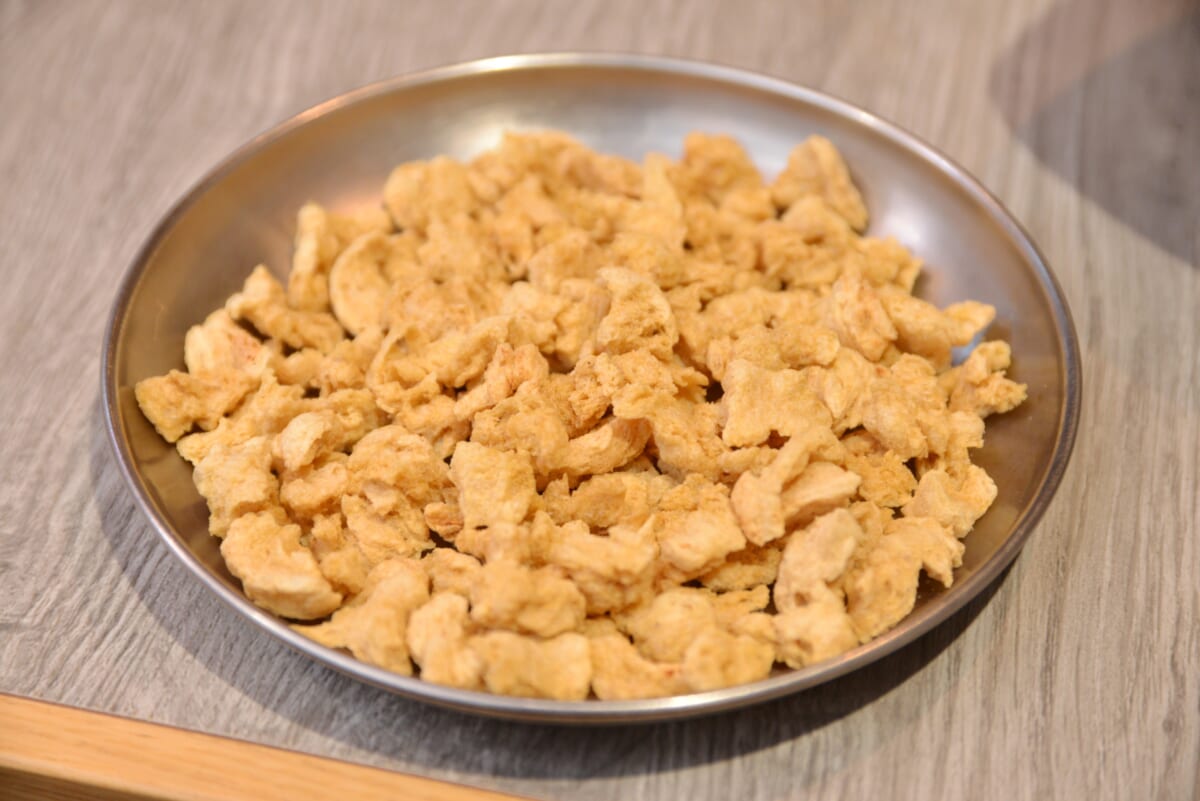 「キリンシティ」が採用したのは、熊本を拠点とする植物肉のスタートアップDAIZ社の「ミラクルミート」という商品。従来の脱脂大豆(工場での搾油後の粕)とは違い、畑からの大豆を丸ごと使用して、大豆そのものからうまみ成分、栄養価を引き出すことに成功した画期的な大豆ミートです。