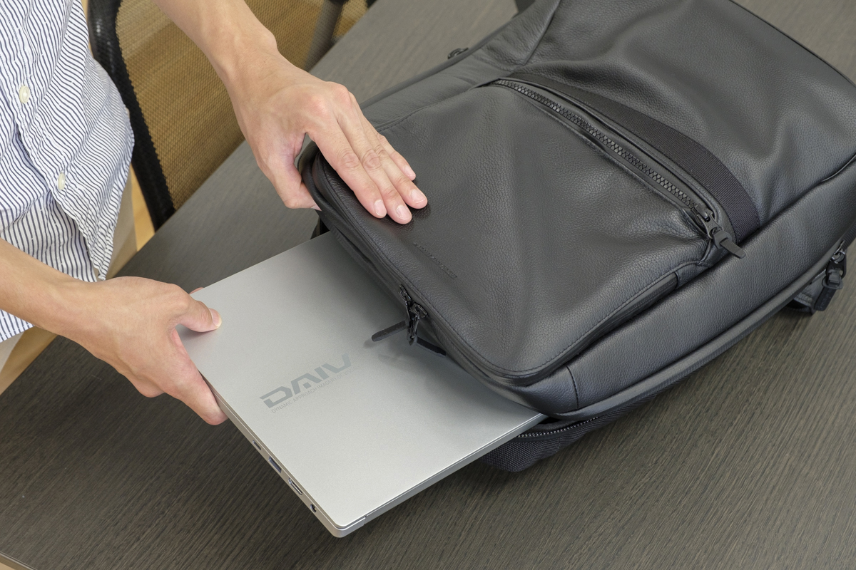 これだけ薄軽なDAIV 4Pは、カバンにスッと入り、持ち運びも楽々。さらに、ボディには軽量マグネシウム合金を採用しているため、頑丈です。外出先にノートPCを持ち運ぶとなると不安はつきものですが、そんな不安を軽減してくれます。なお、軽量マグネシウム合金を使うことで、無駄を削ぎ落としたミニマルな見た目のデザインに仕上がっているという利点も持ち合わせています。
