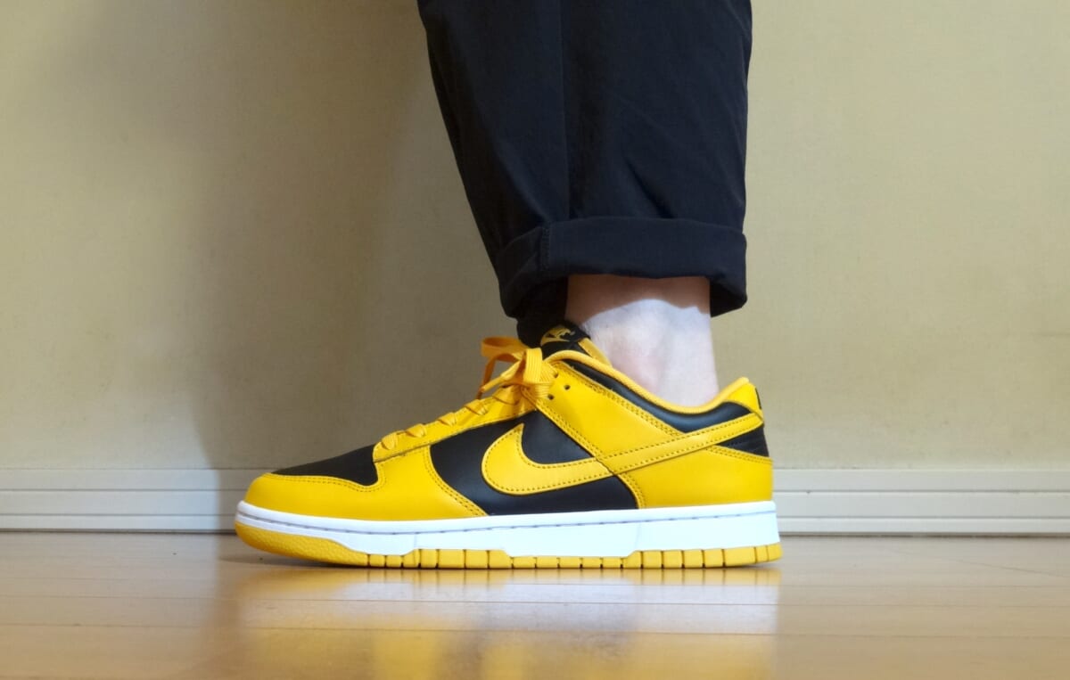 そんなダンク、2020年に誕生35周年を祝うように“コンキ”が復刻。さらに同年の暮れには、“コンキ”と並び人気を博しているアイオワ大学カラーも復刻されました。それは「黒×黄」カラーで構成していて、当時流通量が少なかったことから、“コンキ”よりもレアだったと言われています。2021年の秋、そのダンク「黒×黄」に、待望のローカット版「ナイキ ダンク ロー レトロ」が登場するんですね!