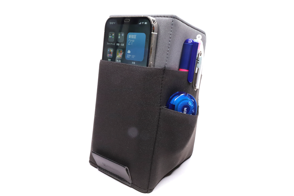 PCにくっつくガジェットポーチに、自立機能をプラス