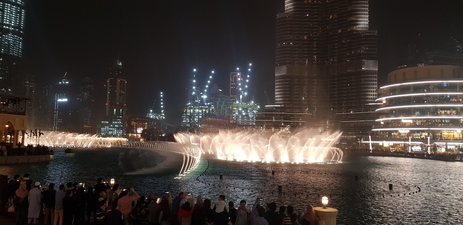 Every half hour in the evening, the Dubai Fountain has a light and wafer performance to their song of choice. The last show is at 11PM and a good spot to watch it is at the Souk Al Bahar Bridge. It can get crowded so maybe arrive 15 minutes before it begins! You also get to get a lovely view of the Burj Khalifa and go up to the top if you so wish.