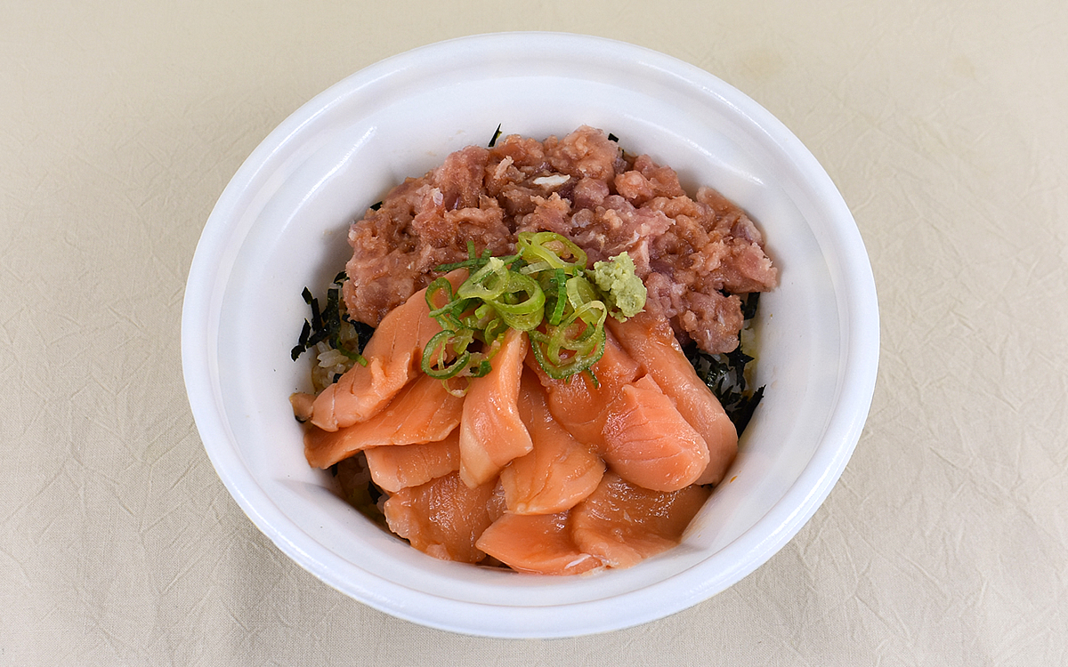 ちなみに刻みネギや刻み海苔も、サーモンとまぐろの味わいにアクセントをもたらす役割として存在感を発揮。生わさびも付いているので、海鮮メニューに刺激が欠かせない人にぴったりではないでしょうか。