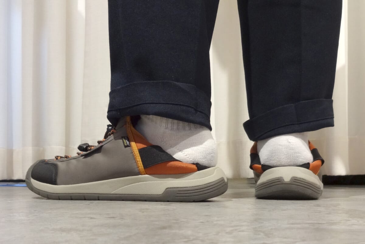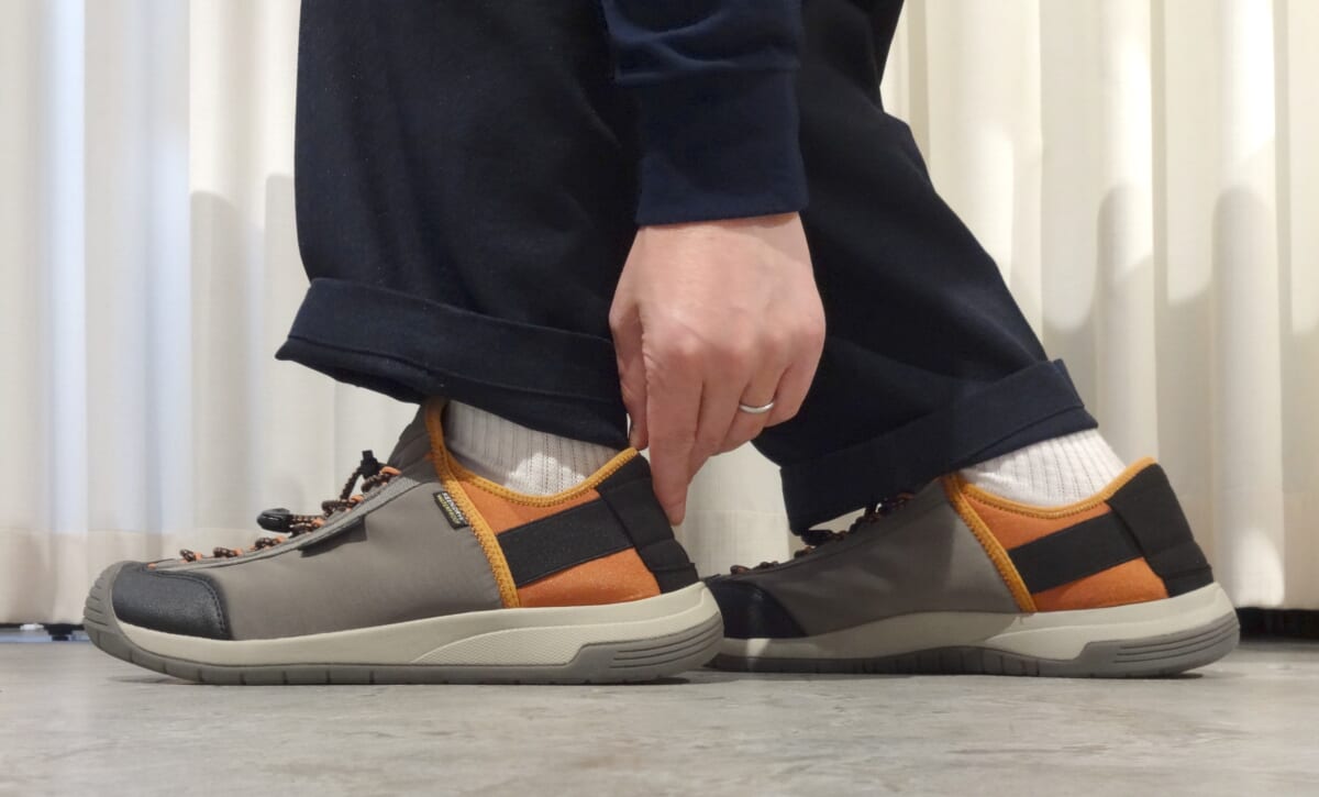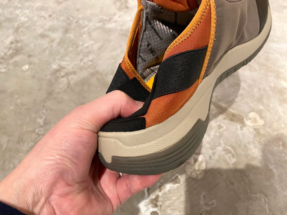 タフかつ防水機能を搭載しているにもかかわらず、スリップオンとしても使えるなんて便利です。キャンプなどでテントの出入りが億劫ではなく、スポッとラクに履けるのでとても使えます。洗練されたデザインもポイントで、デイリーユースにもフィットしますね!