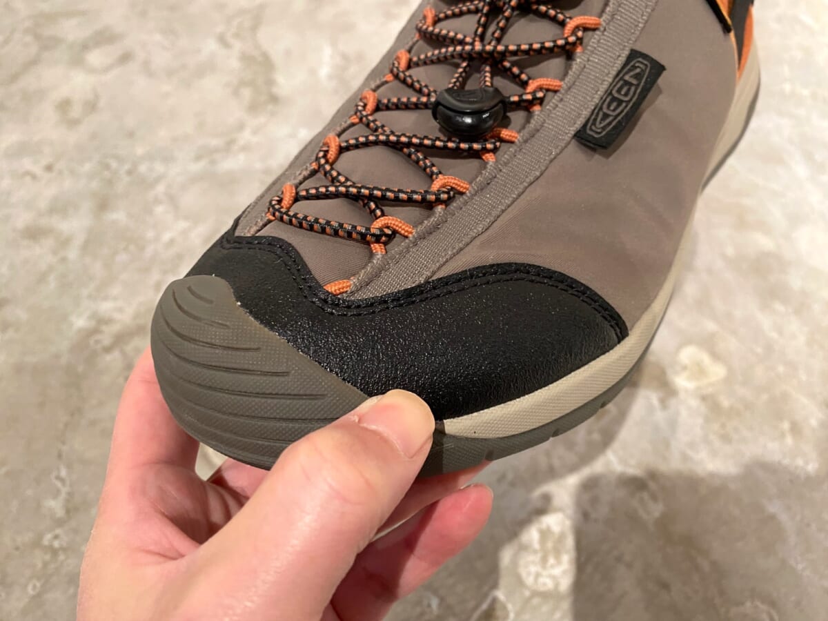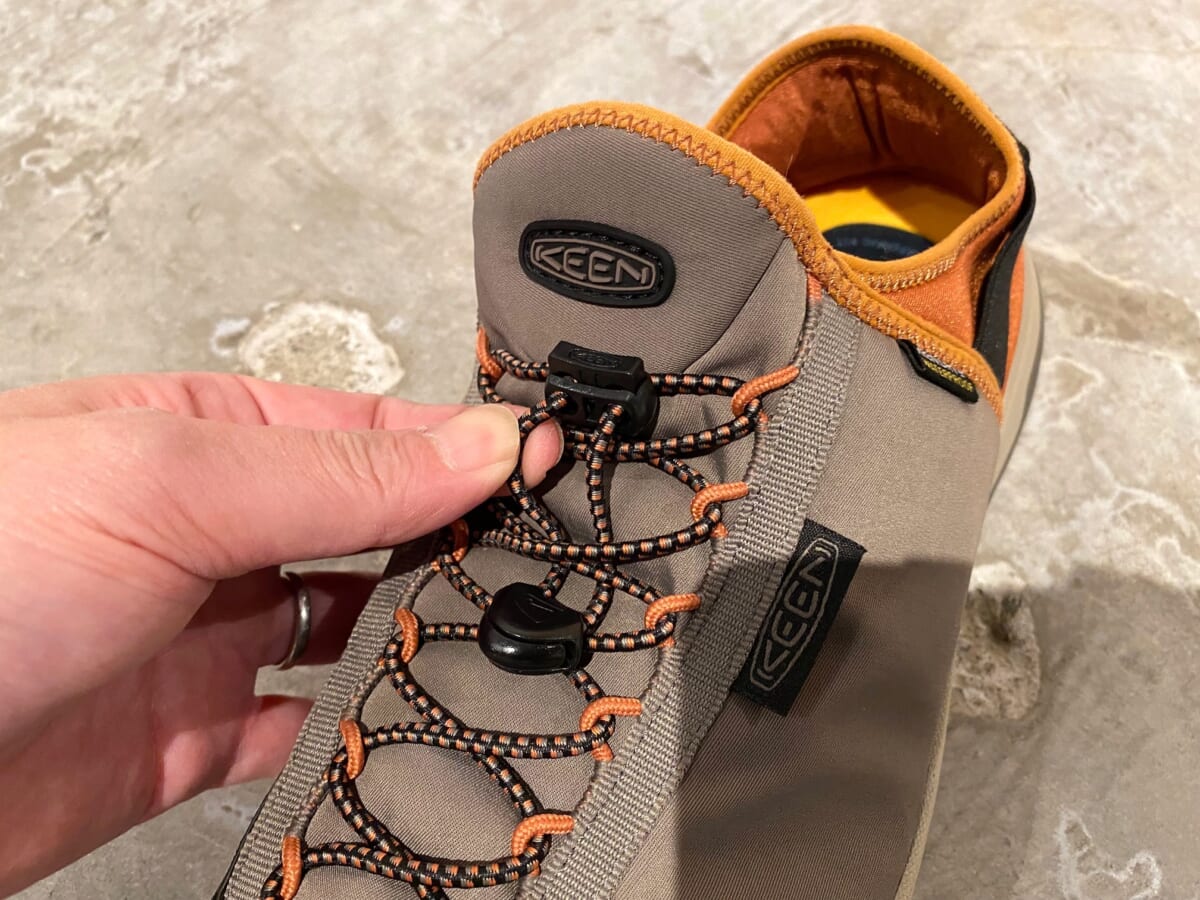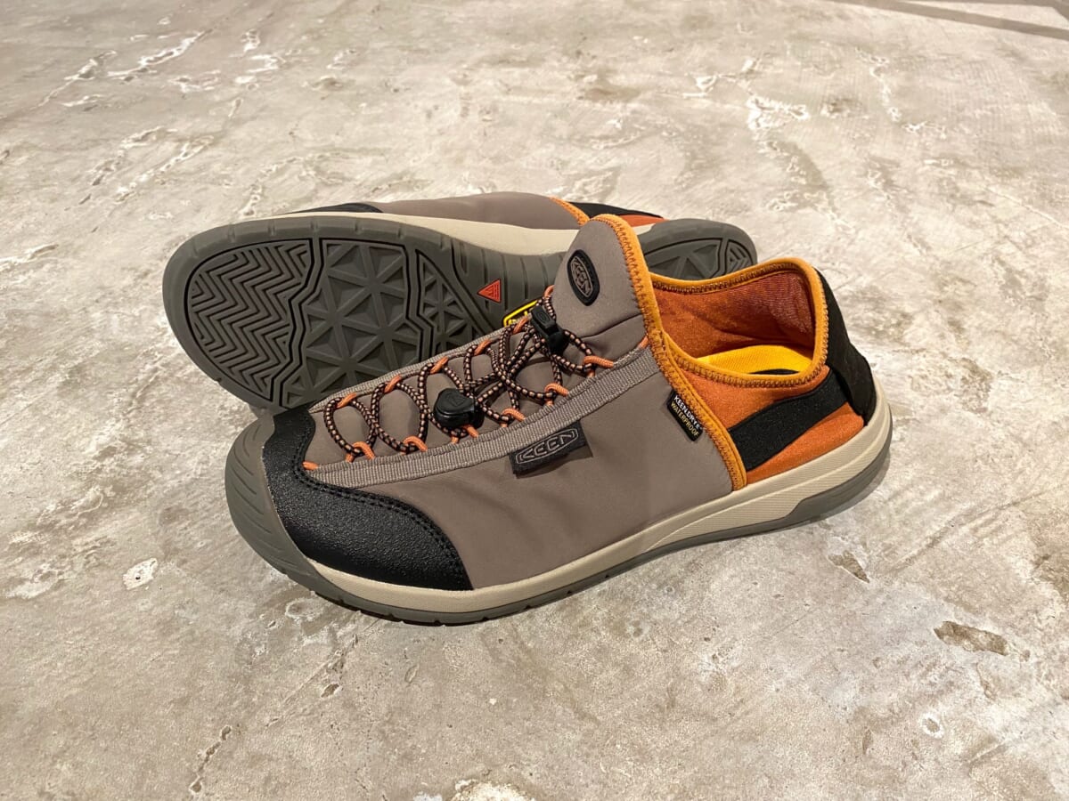 本作は、脱ぎ履きがラクチンなバンジーシューレースを使用したオールテレインシューズ。アッパーには軽量なナイロンマテリアルによるキーン独自の防水機能を採用しながら、ヒールカウンターを倒してスリップオンシューズとしても履けてしまう、コンバーチブルデザインを採用。キャンプからデイリーユースまで、様々なシーンに対応します。