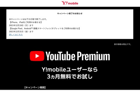 | SoftBankとY!mobileの「YouTube Premium 3ヵ月無料キャンペーン」が終了に! |