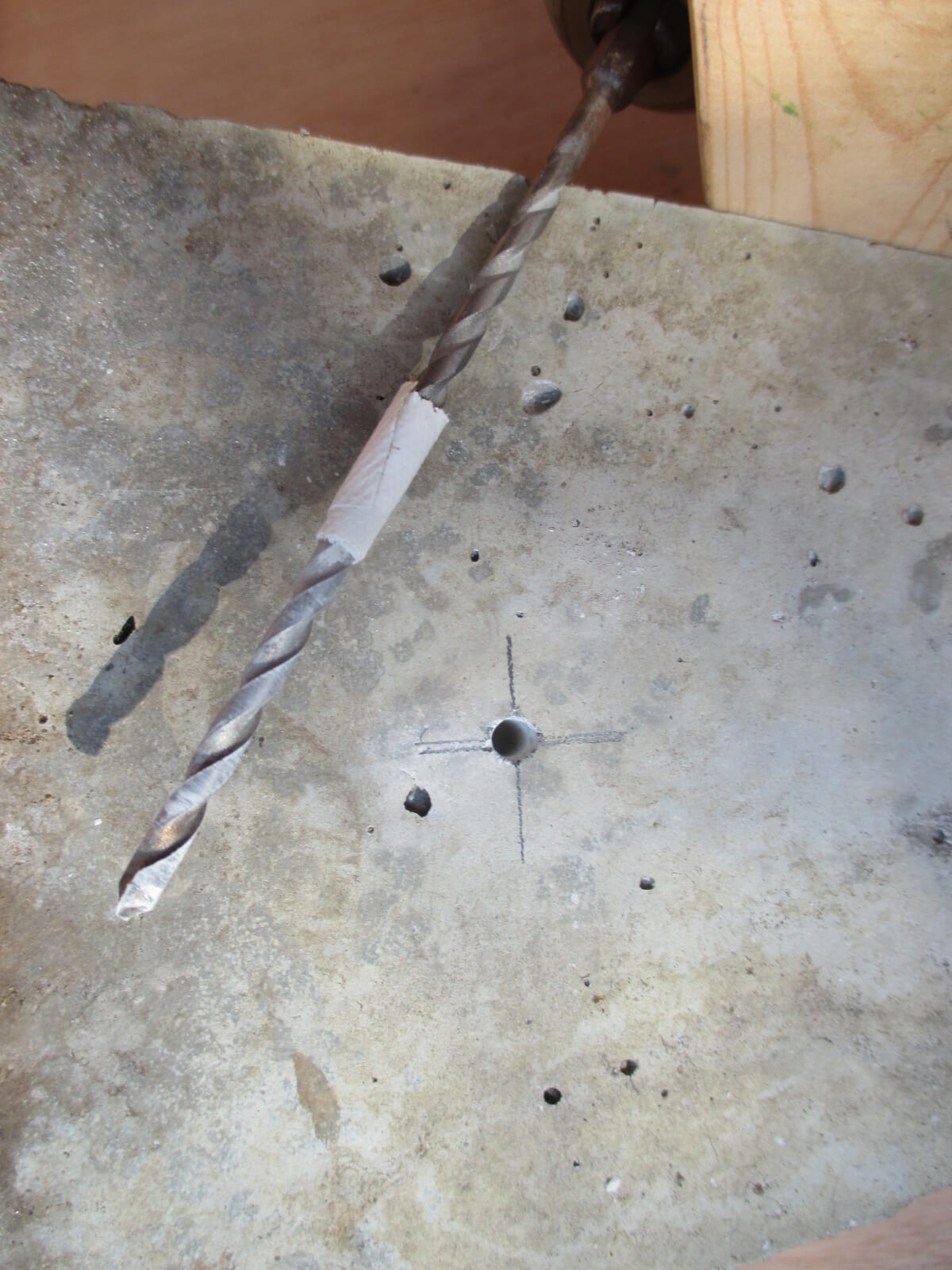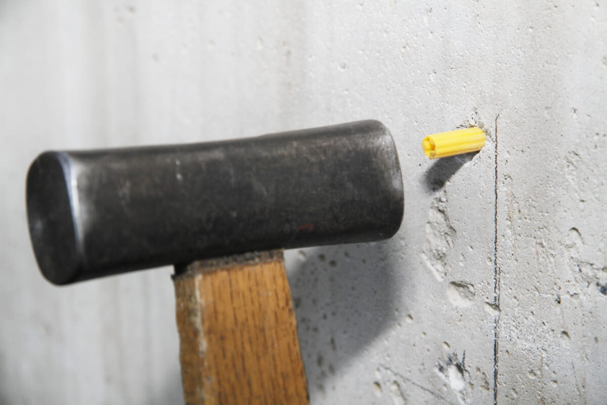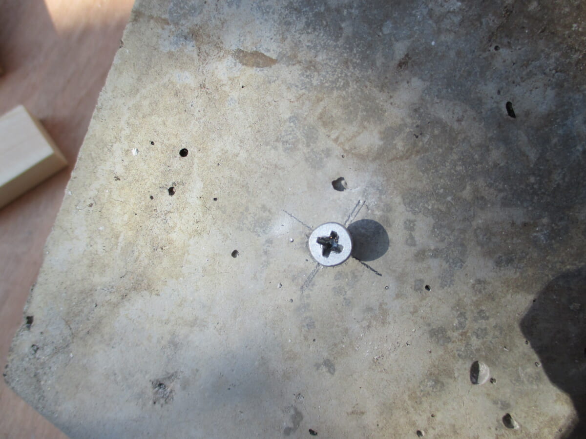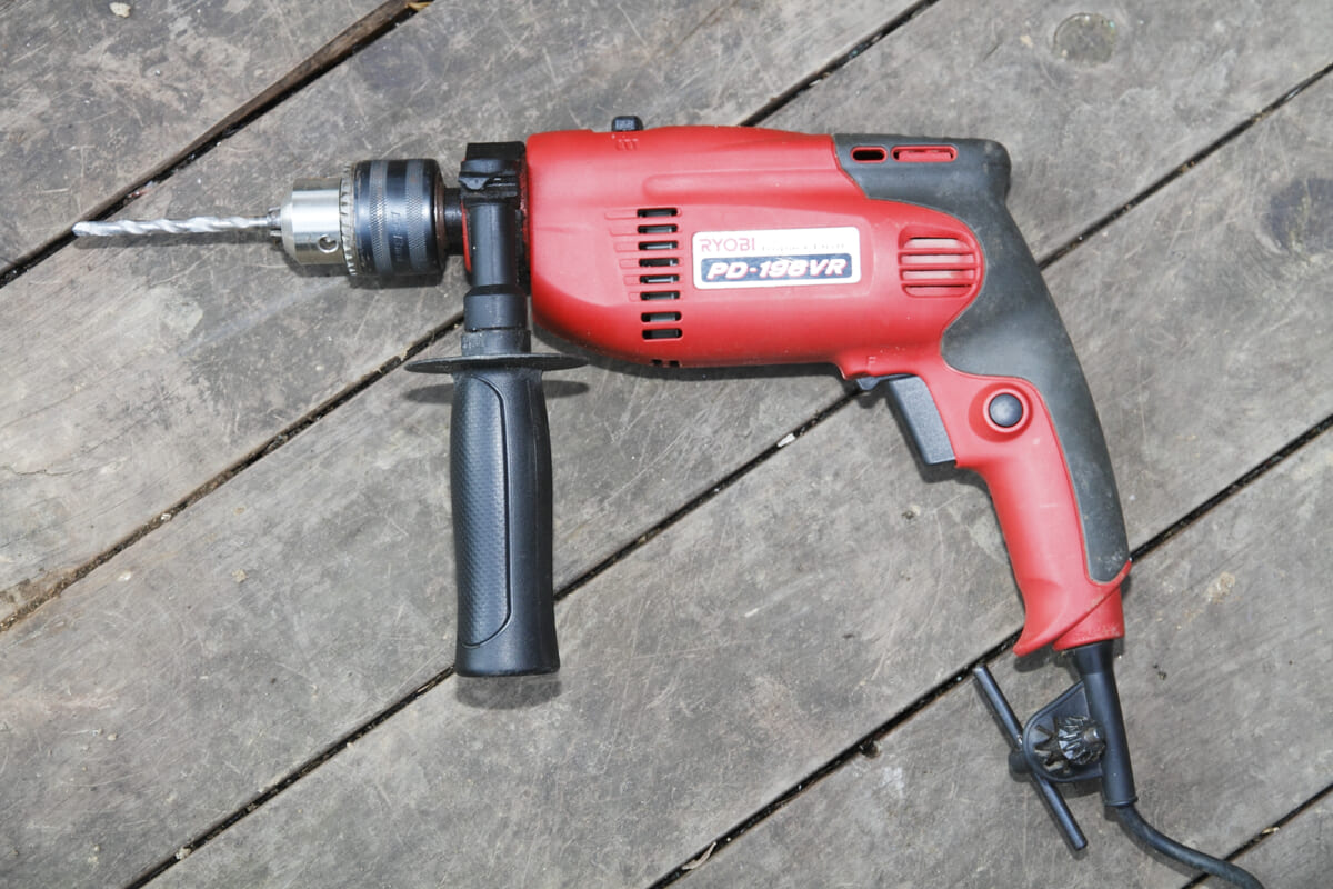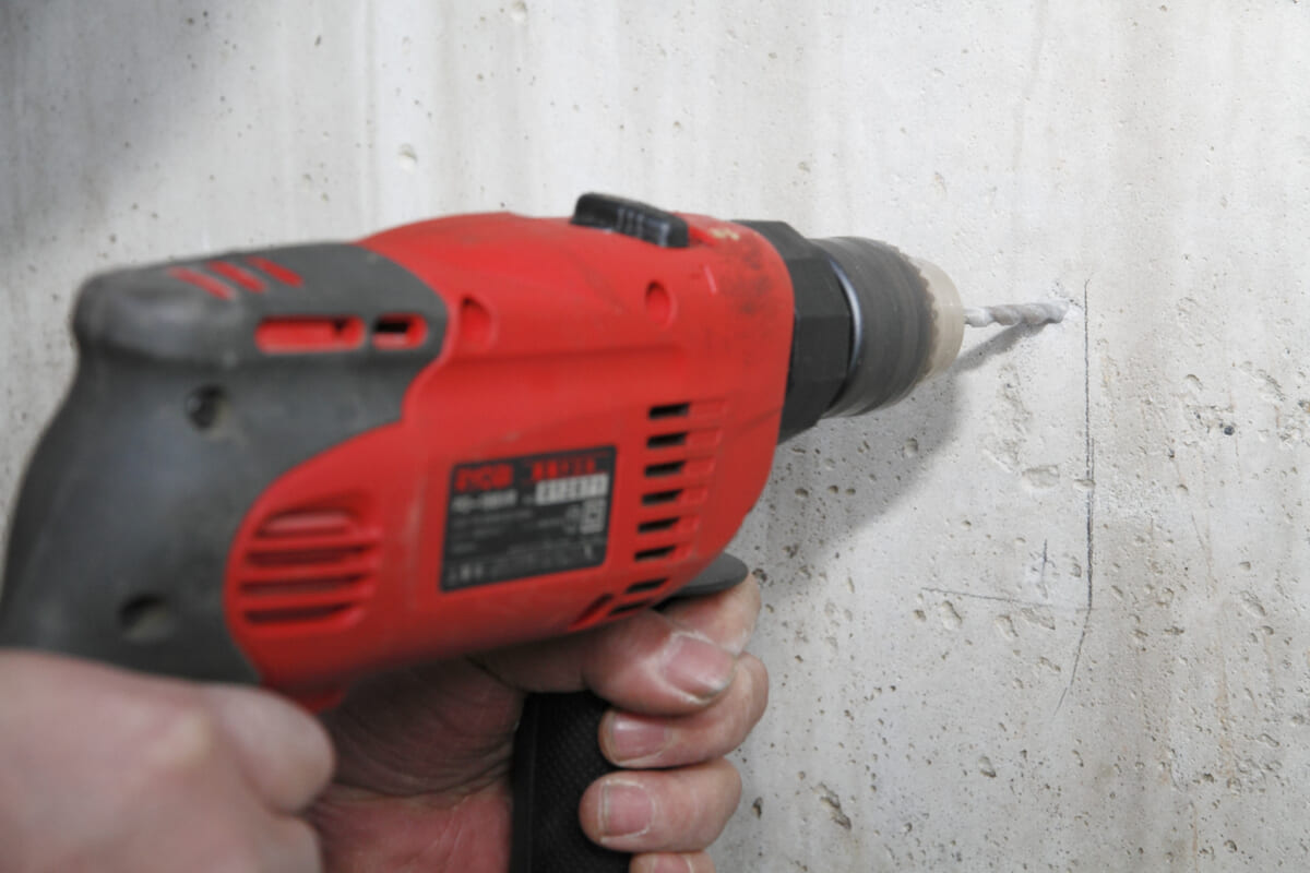 コンクリートへのビス打ちは、基本的に振動ドリルにコンクリートドリルを装着して下穴をあけた上で行なう。