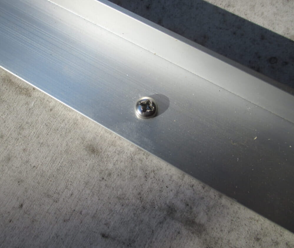鉄板、薄鋼板、アルミ材同士やアルミサッシの窓枠の固定に使われることが多いタッピングビス。ナベ頭、トラス頭が使われることが多い、皿頭を使う場合は、ビス打ちする素材に合わせた皿取りビットで頭に合わせた皿を切削してから打つ。