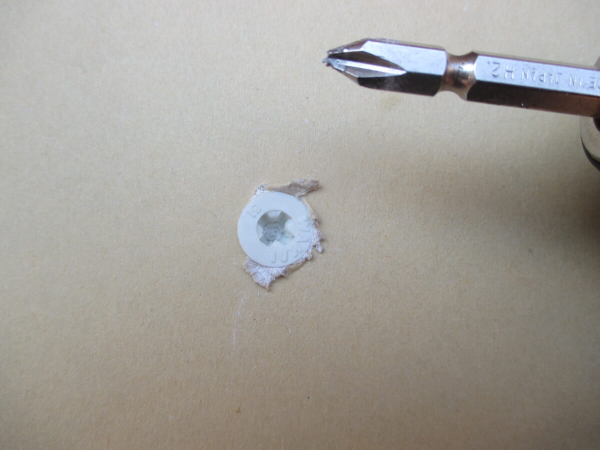 中空ボード、石こうボードにビス打ちするための下地になる大きな錐状のブロック。下穴なしで直接ボードに打ち込め、これを下地にビスを打つことができる。写真のものはビスもセットになっている。