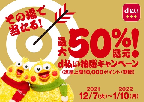 | その場で当たる!最大50%還元!d払い抽選キャンペーン |