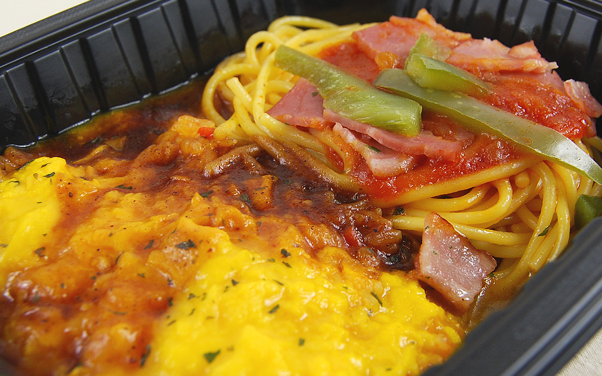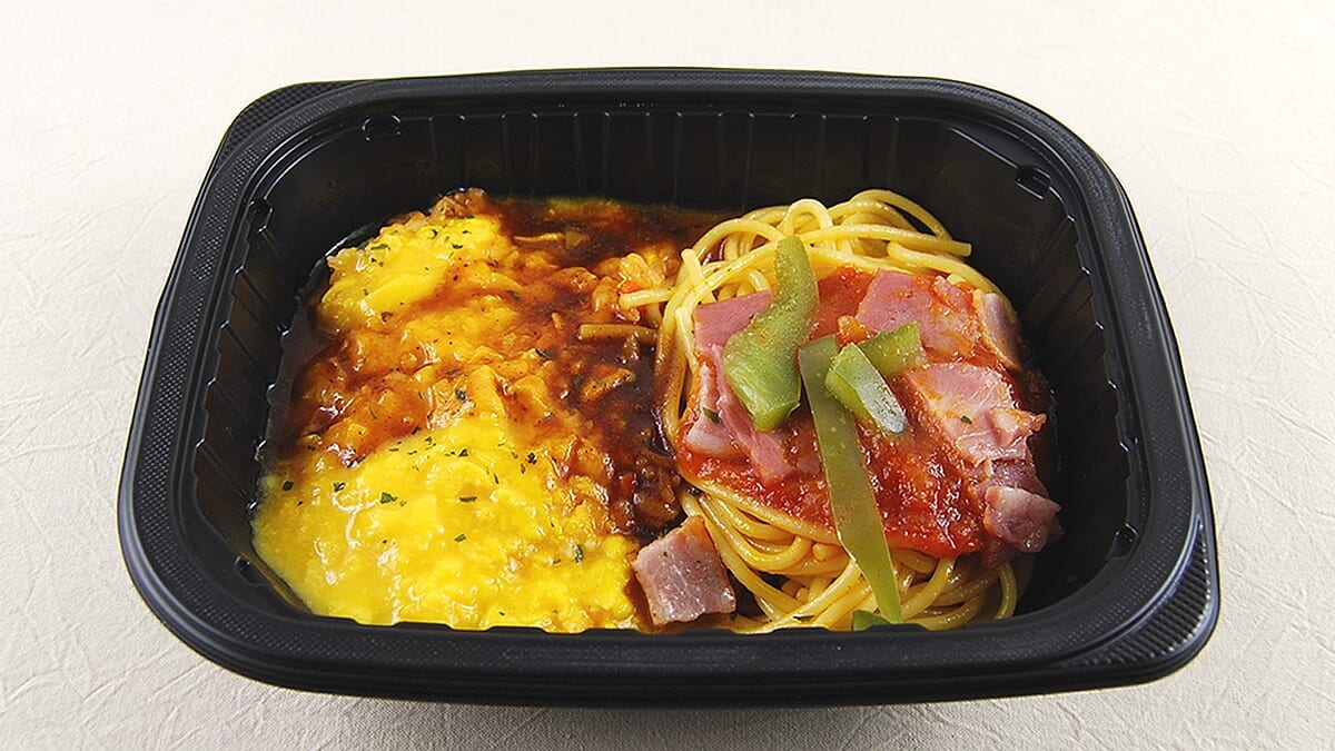 一方ナポリタンは甘めに味つけされており、塩気のあるベーコンと相性ピッタリ。シンプルだからこそ、どこか懐かしさを感じる味わいを堪能できます。お弁当の付け合わせとしてパスタが入っていることは多いですが、同商品においてはオムライスと同等の存在感。麺量も申し分ありません。