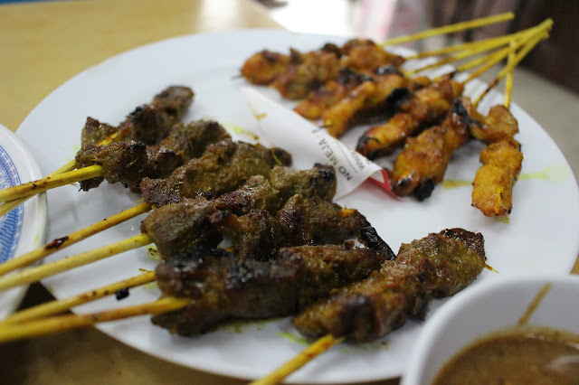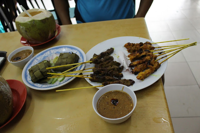 Not to forget that satay is incomplete without rice ketupat (smooshed roasted rice in pleated palm leaves), onions, and cucumber slices!
