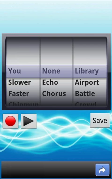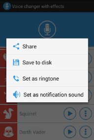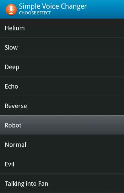 Aplikasi ini adalah yang terakhir pada daftar 10 terbaik aplikasi pengubah suara. Memiliki enam efek suara yang berbeda untuk suaramu, saya pribadi tidak menemukan banyak perbedaan antara beberapa dari mereka. Anda juga dapat mengubah kecepatan suara Anda dan Anda dapat memutar suara Anda terbalik juga. Anda kemudian dapat menyimpan suara ke ponsel Anda dan meningkatkan atau mengurangi volume itu sebelum menyimpannya. Anda kemudian dapat memilih suara Anda disimpan dari menu utama dan baik berbagi atau mengaturnya sebagai nada dering.