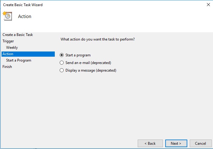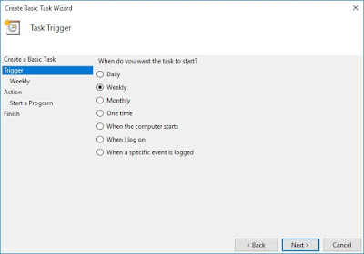 6. เลือกว่าต้องการจะให้ Start เมื่อใด ในที่นี้จะยกตัวอย่างเป็น Weekly