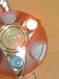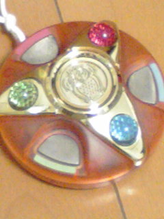 占い機能がついていて、中央のボタンを押し、上、斜め左右の銀色の部分に指を添えるとドールナイツを表した赤、青、緑の宝石がスロット的に光り出し、止まった色で診断が出来るのです