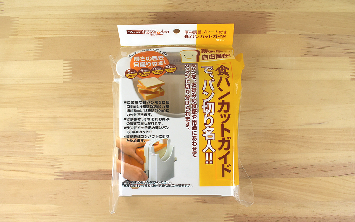 ●厚み調整プレートがついた「食パンカットガイド Sサイズ」(スケーター)