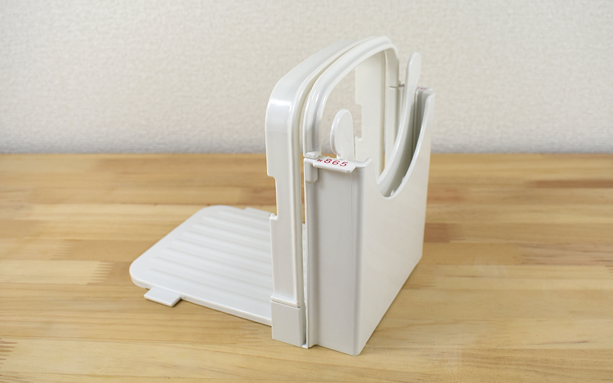 カリっと焼いた表面にバターやジャムを塗って、おいしくいただく“食パン”。「朝食に欠かせない!」という人も多いと思います。一方カットされていない1斤まるごとのパンを切ろうと思うと、意外に大変。パン切り包丁をまっすぐ入れたつもりなのに、気づいたら斜めになって厚みが変わってしまうことも……。そんなパン切りの悩みを解消してくれるのが、東急ハンズで販売されている「食パンカットガイド Sサイズ」(1320円/税込)です。