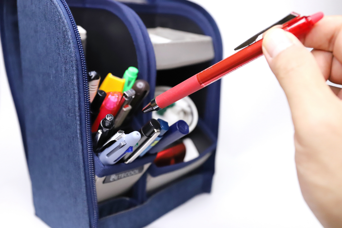 さすがにメーカーもそのあたりはとっくに汲み取っているようで、ペンケースの大型化は着々と進んでいるように見える。とはいっても、単にたっぷり入るというだけであれば、極端にいえばビニール袋だってかまわないはず。やはりそこは、ペンケースならではの機能性っていうのも欲しいだろう。