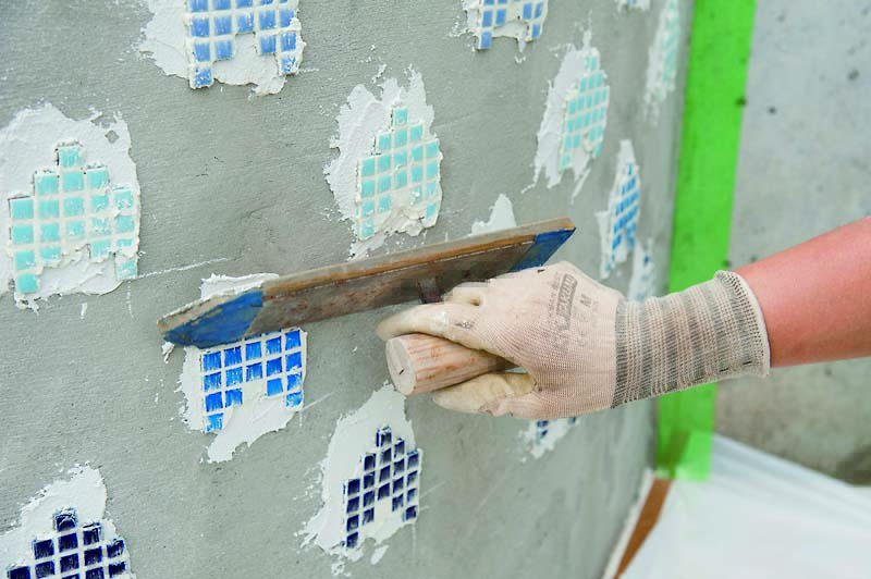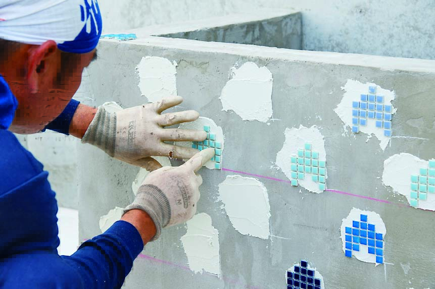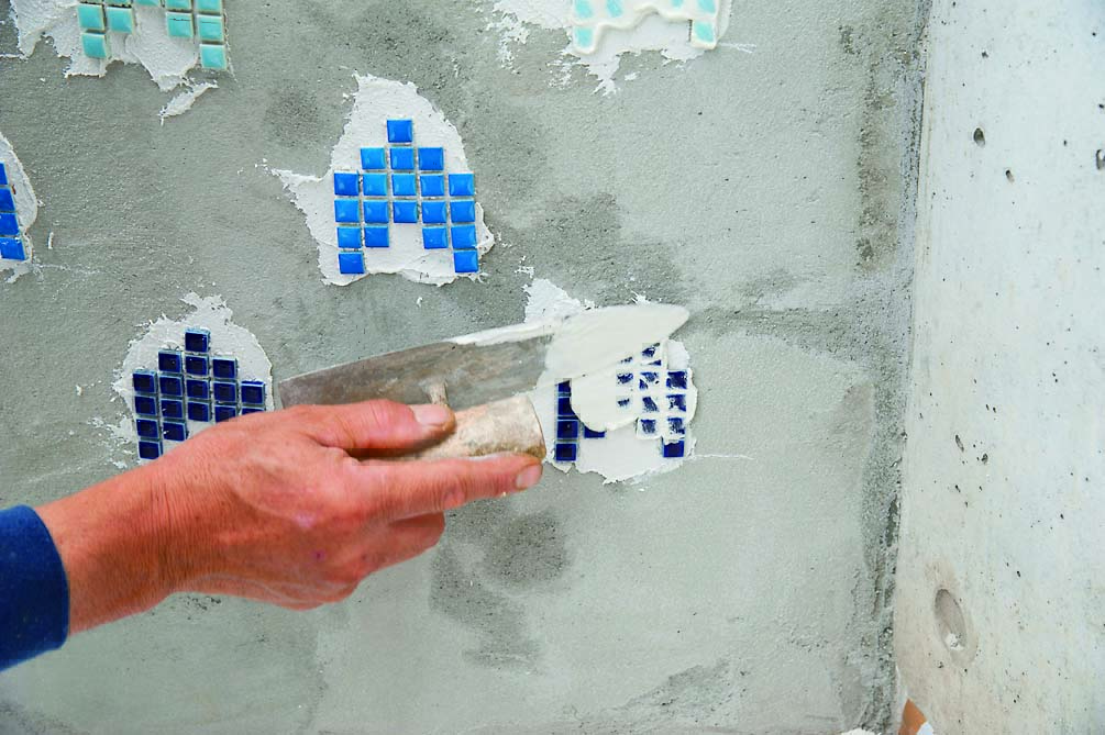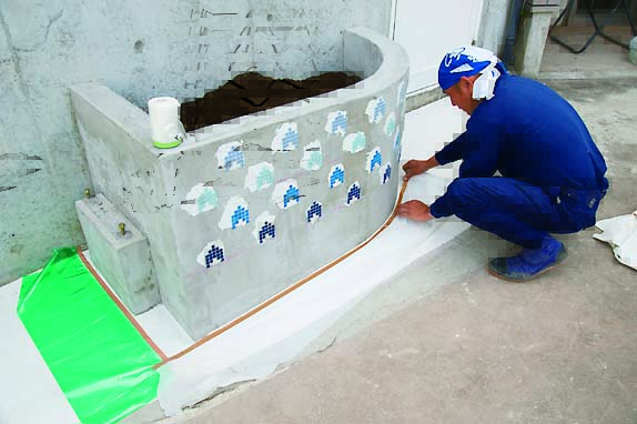 STEP3 タイルを張り、漆喰を塗る