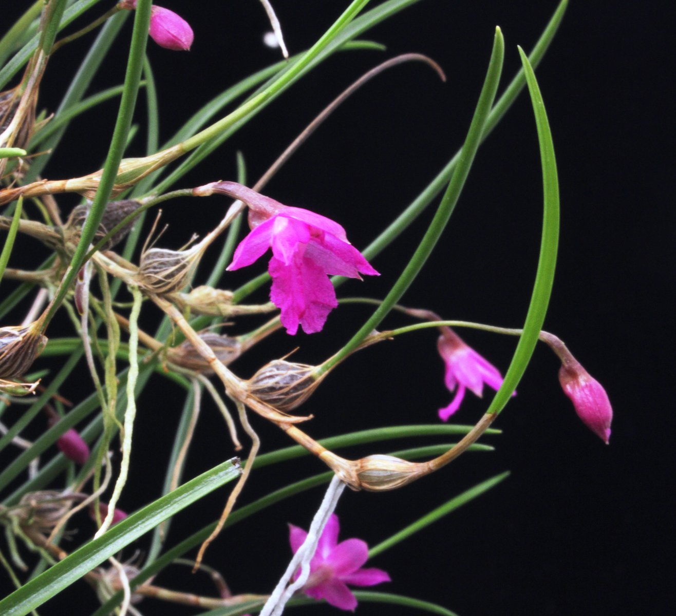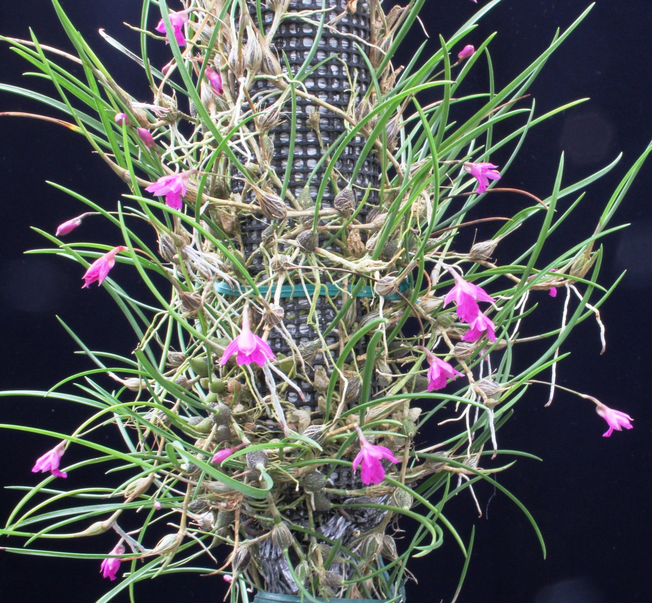 遮光ネットの筒に着生させた時、少し乾燥しすぎかなぁとも思いましたが、昨年に比べると格段に花の数が増えました。