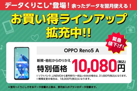 | Y!mobileにて5G対応スタンダードスマホ「OPPO Reno5 A」の本体価格が値下げ! |