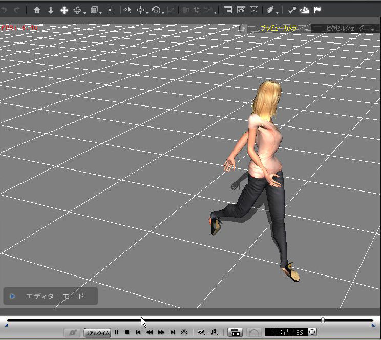 キャプチャされたperfume・かしゆかのダンスデータとジミーのプロポーションが全く違うので、なんだかうねうねした結果になってしまったわけで、今回はその点を踏まえ、プロポーションがperfumeっぽいキャラクターを選んで再挑戦です。(←懲りない性格)