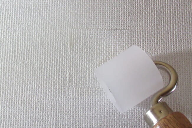 今回は室内クロス壁紙の破れた部分を粘着タイプ補修用カベ紙を使って補修する方法を紹介。
