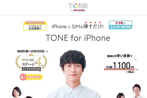 | NTTドコモのエコノミーMVNOにトーンモバイルが追加!専用プラン「TONE for iPhone」が提供 |