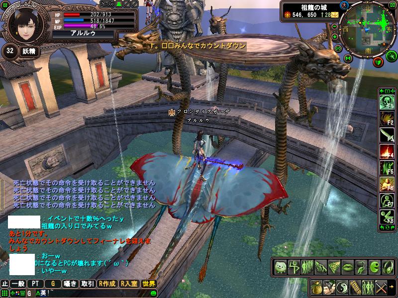 イベント地点に着いたら、サーバーダウンまで300秒のテロップが