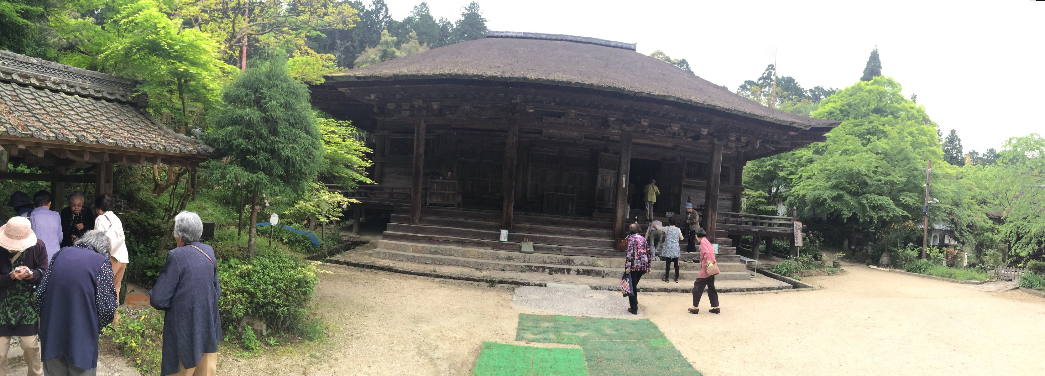 国宝の本堂を拝観した後、お寺の奥様のご講話を聞きました。本尊は奈良時代の行基が製作したと伝えられる子安地蔵菩薩「子宝と安産・延命長寿」で先祖代々を弔う菩提寺では無いとことです。本堂前の清めの水で手と口を清めて本堂に入ります。(下手なパノラマ写真ですがm(_ _)m )