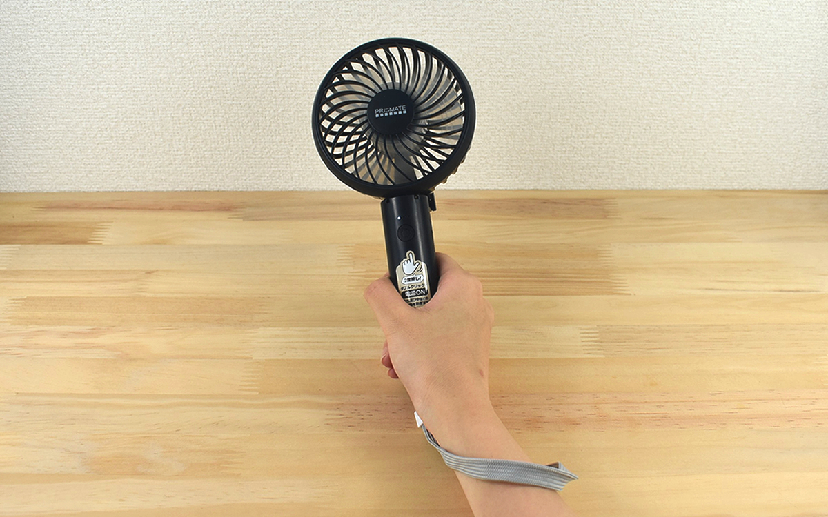 3段階の風量と「リズムモード」が搭載されている同商品。試しに「強」モードで使用してみましたが、驚くほど静かです。もちろん静かな代わりに風量が弱いということはなく、パワフルな風が体験できますよ。約105(幅)×50(奥行)×210mm(高さ)のコンパクトサイズなので、持ち運びも楽々。持ち歩いて使用する時は、ストラップを装着すると落としてしまう心配もありません。