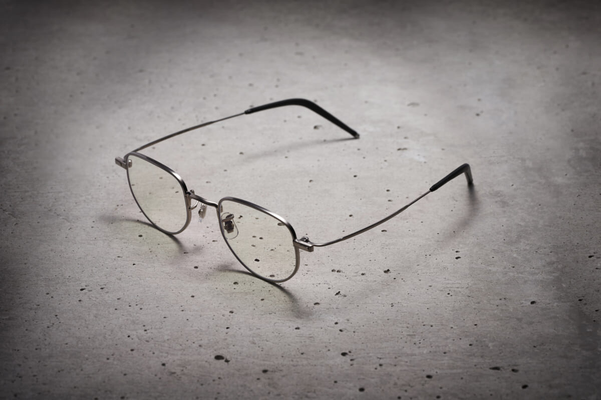 フロントは高密度で変形が少なく、人体からの影響を受けにくく、経年変化がしにくい特殊なプラスチック「Highcount acetate」 を使用。L字型の特殊な形状を有したテンプルは、掛け心地の良さとオプティシャンによる調整のしやすさという目的を追求した結果、生まれた形状。CP[樹脂]とシリコンで成形したグリップ性のあるエンドには、スウェーデン語で「重い石」 を意味するタングステン製のエンドチップを採用。非常に大きな比重のため、前方部及び鼻梁部に掛かる重量を軽減。掛け心地が良く、軽くて壊れにくいという理想的なプロダクトを追求しています。