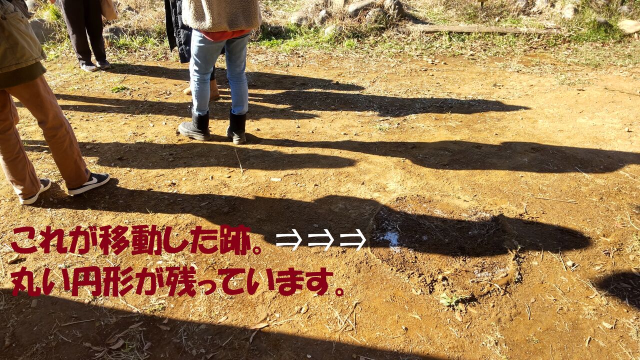 丸い丸太を置いた跡は湿っています。
