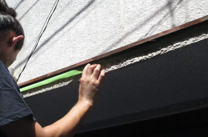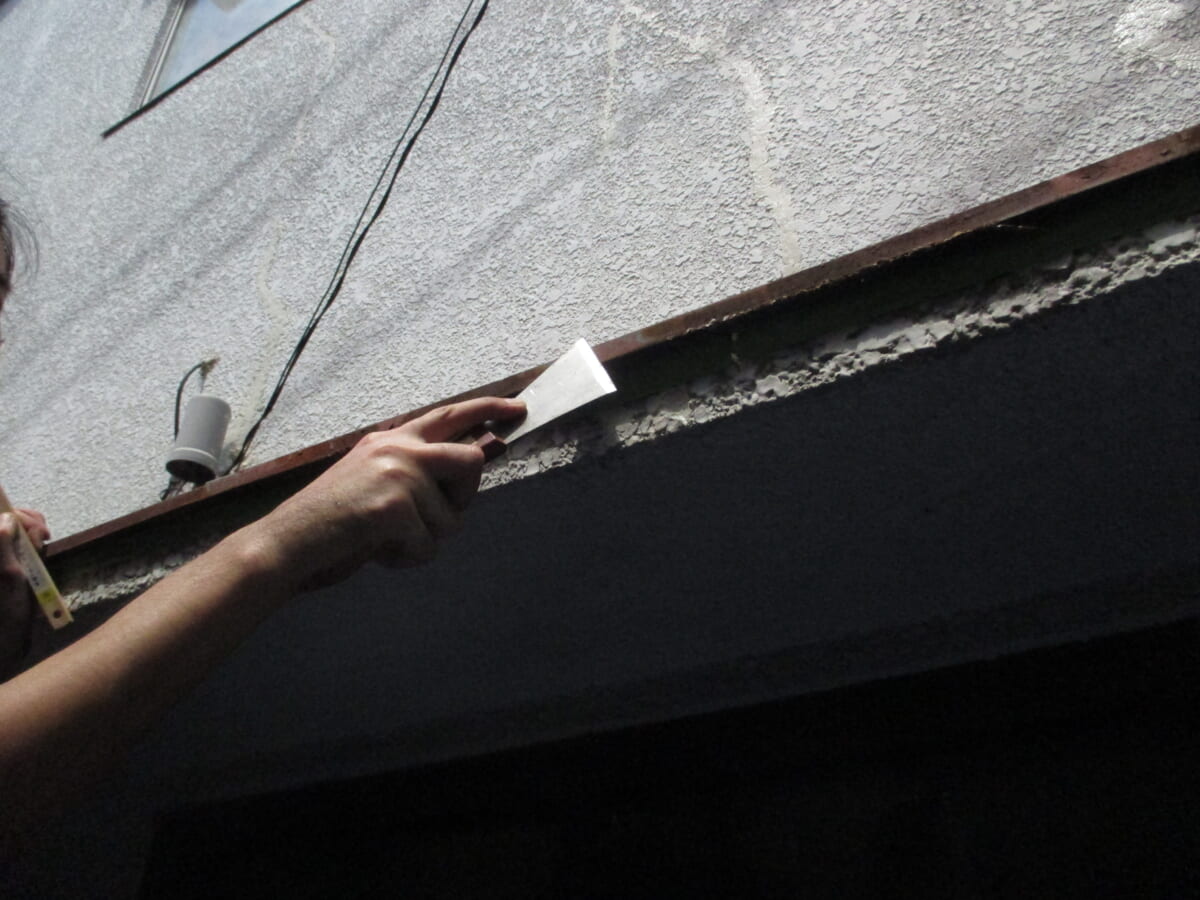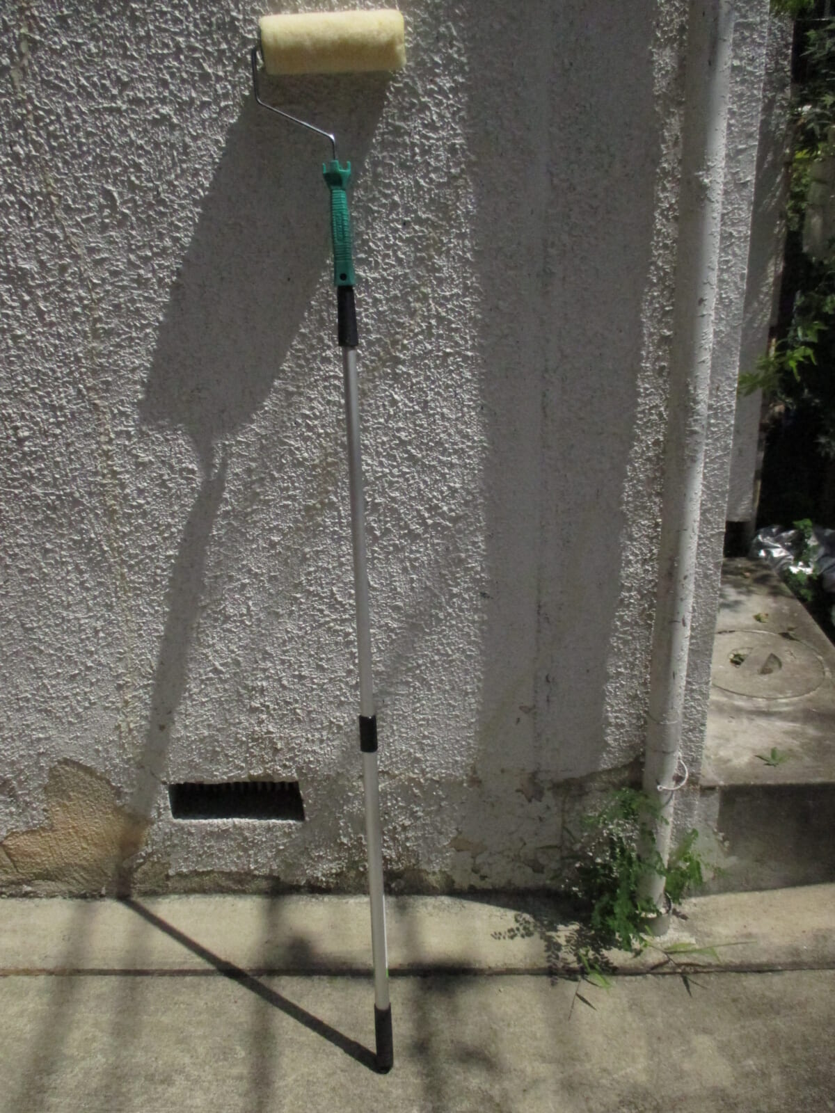 ひさしの再塗装作業では、基本的に脚立上での作業になるので、脚立を設置する地面がしっかり安定しているかを確認すること。