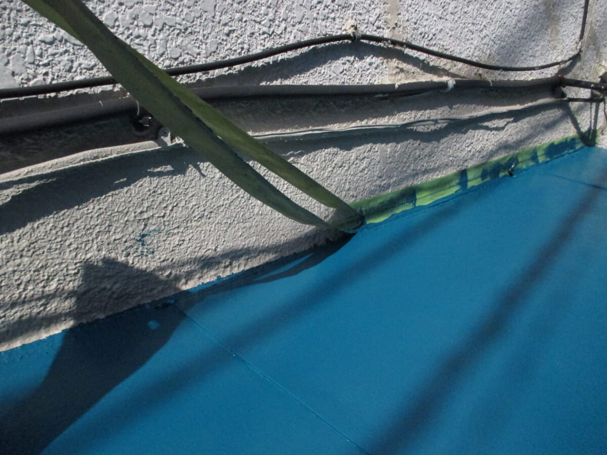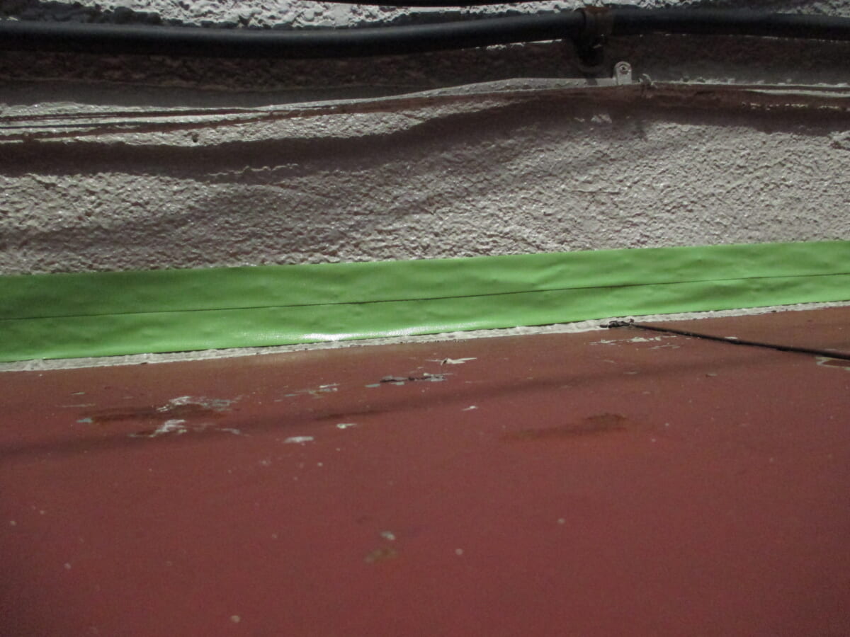 塗らない範囲を汚さないためのマスキングもていねいに、徹底的に張り巡らしておく。今回のようにローラーバケを使う場合は、ローラーバケの長さも考慮してマスキングしておかないと塗装しなくていい壁部分に塗料がついてしまうので、よく観察してていねいにマスキングする。