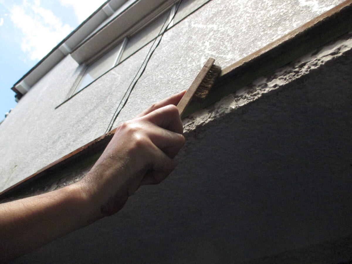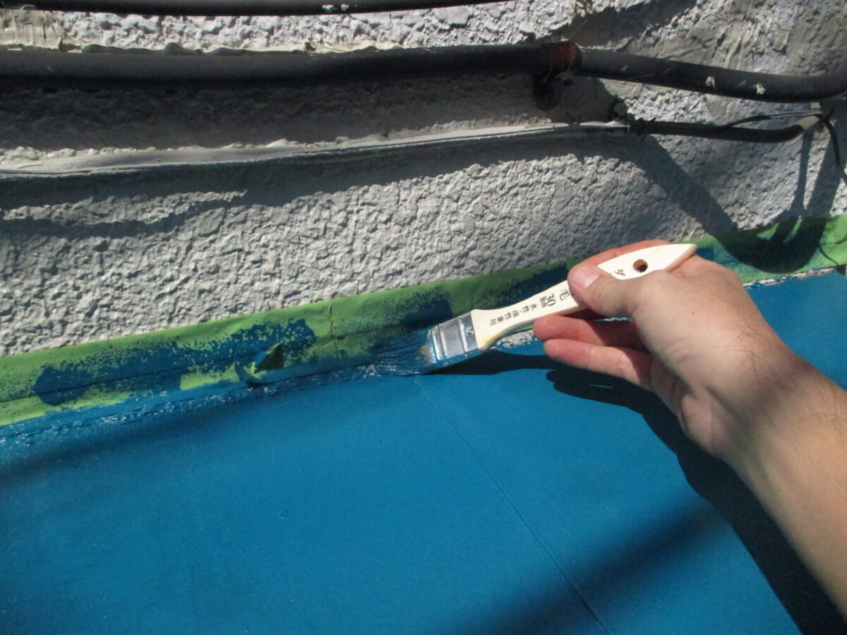 塗装は、塗料をしっかりかくはんして開始する。ハケ塗りの場合、塗料は少なめに取り、ハケは立てて塗る。とくに垂直部分は厚塗りせず、塗料が垂れないように塗る。ローラーバケはまんべんなく塗料を取ったら、よくしごいて取り過ぎた塗料を落としてから塗装する。