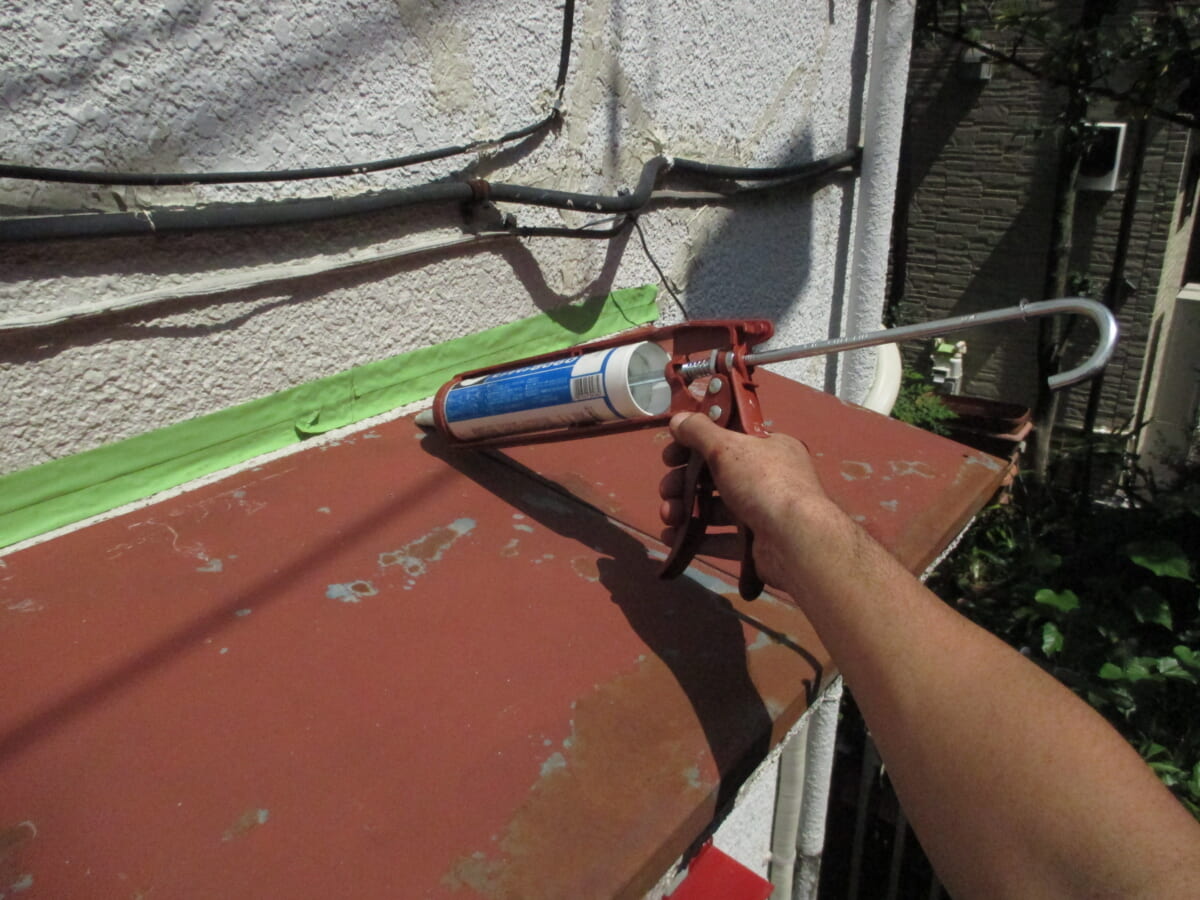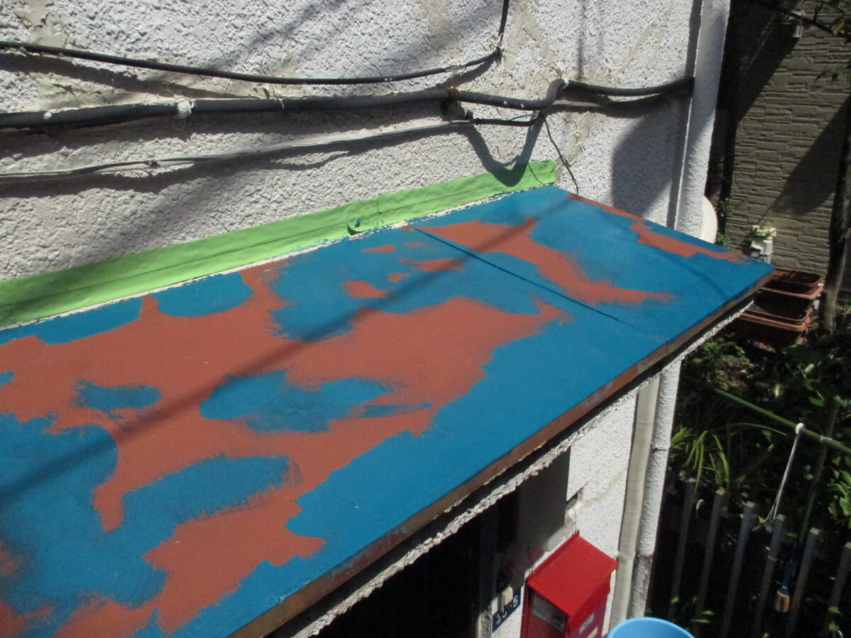 屋根が瓦やスレートでも、ひさしはトタンという家は多い。新築時にはしっかり塗装されていても、5年から10年で塗装の効果が弱まるという。サビで穴のあく前に再塗装する。