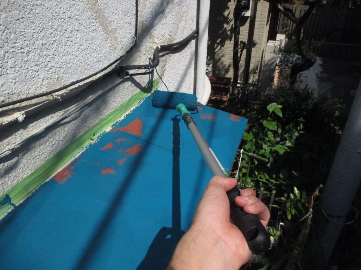ポイントは本塗装の前に、トタンの素地まで出た部分を、ハケを使って拾い塗りしておくこと。下ごしらえをしっかりしておけば、本塗装は簡単。ローラーブラシを使い均一を心がけて塗れば、誰でも失敗なく塗装できるはずだ。
