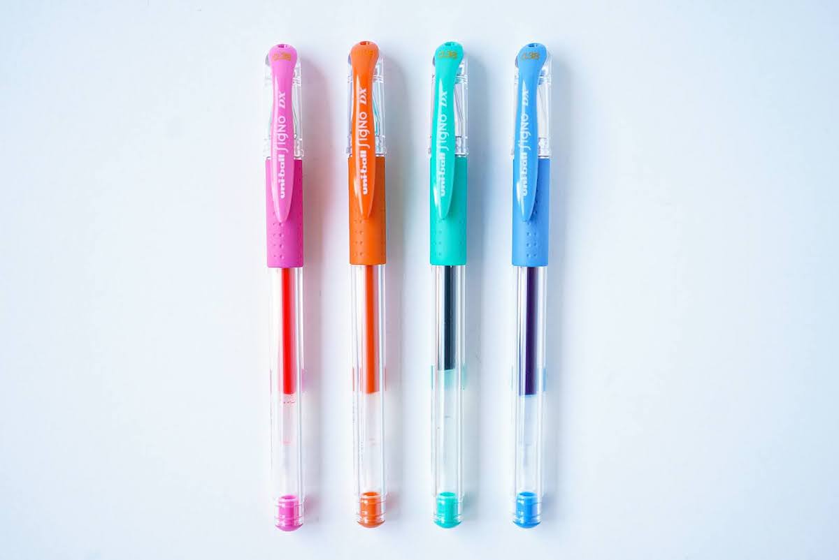 このように色への探求心が尽きないのがシグノの特徴です。書きやすいのは前述の通りですが、色数が豊富なので、文字を書くだけではなくイラストや図形にも向いています。私はアイデア出しの際にシグノを使っていますが、気分に沿ったさまざまなカラーのインクを使いたいので、シグノがぴったりなのです。