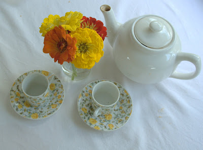 E and I have had a couple of tea parties since, mostly with water, even though she asks me for tea (she’s her father’s daughter). I’m looking forward to R being a little older so he can play tea party too ( you know, if he wants to…). I mean boys can play tea party too, right?