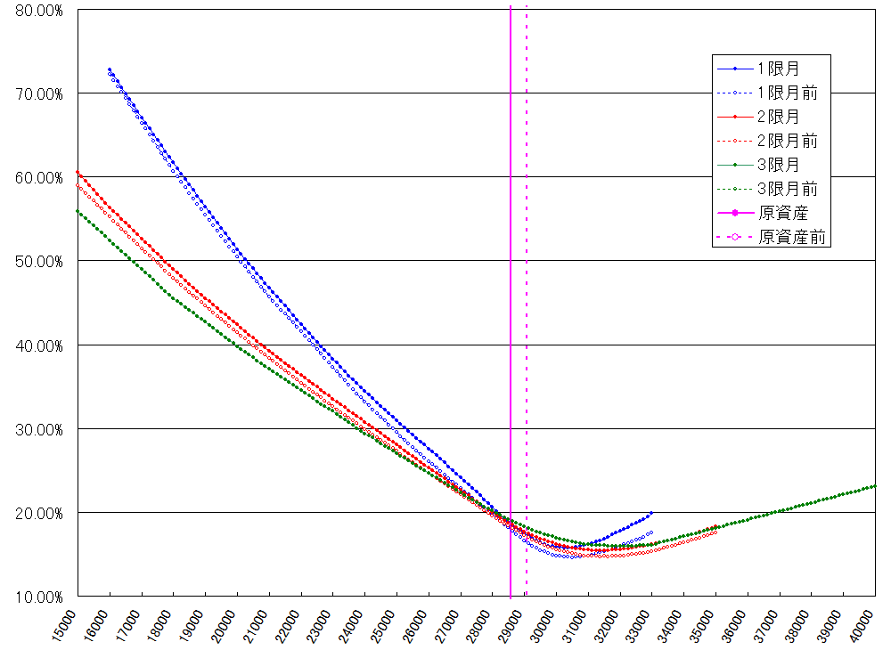 ※3月限のIVはクロージングセッション直前の15時10分現在のものです。