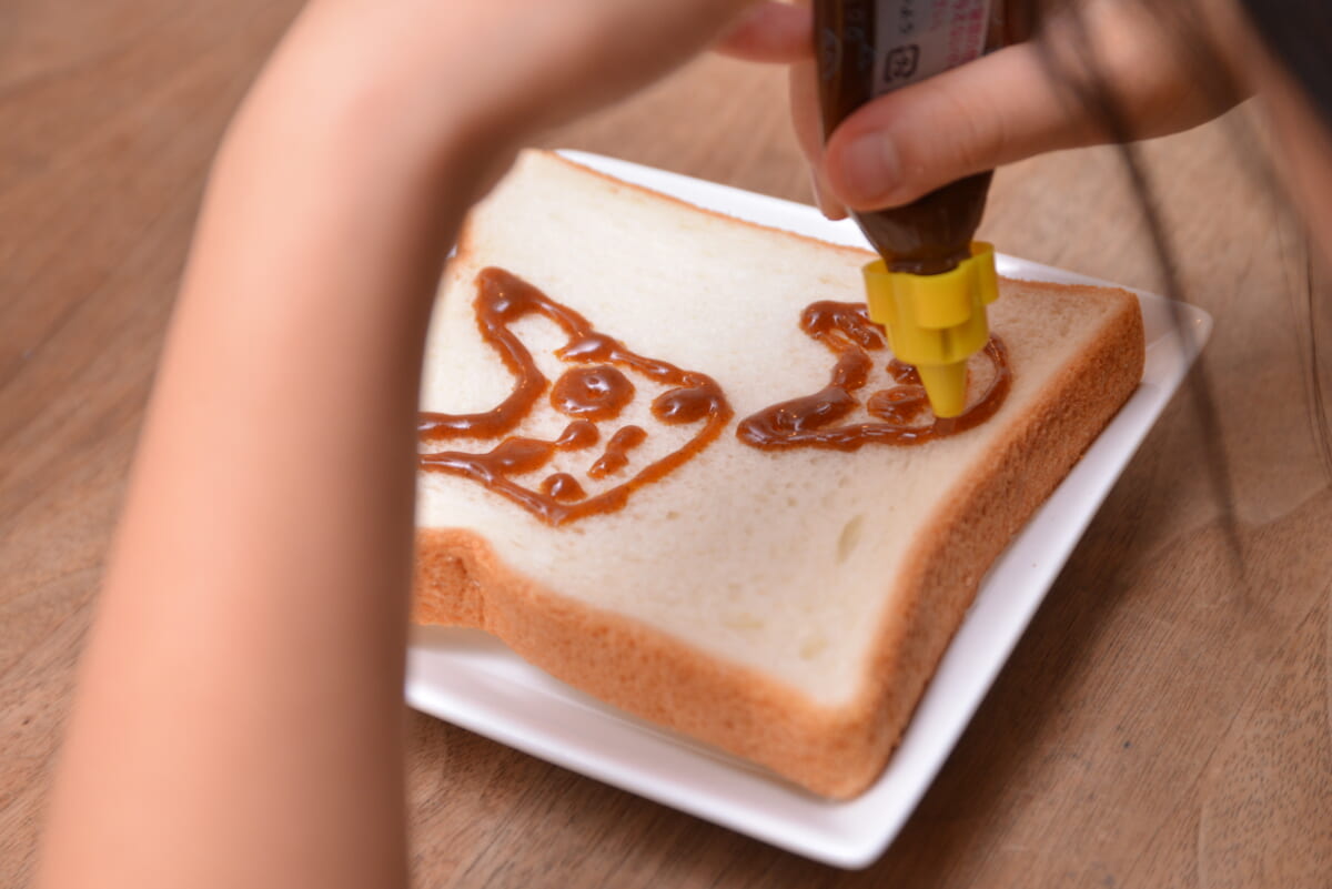 次はパンでお試し。ご飯より吸水率が高そうな食パンでも、チョコペンのように自由に描けたそうで、大きな失敗はありませんでした。