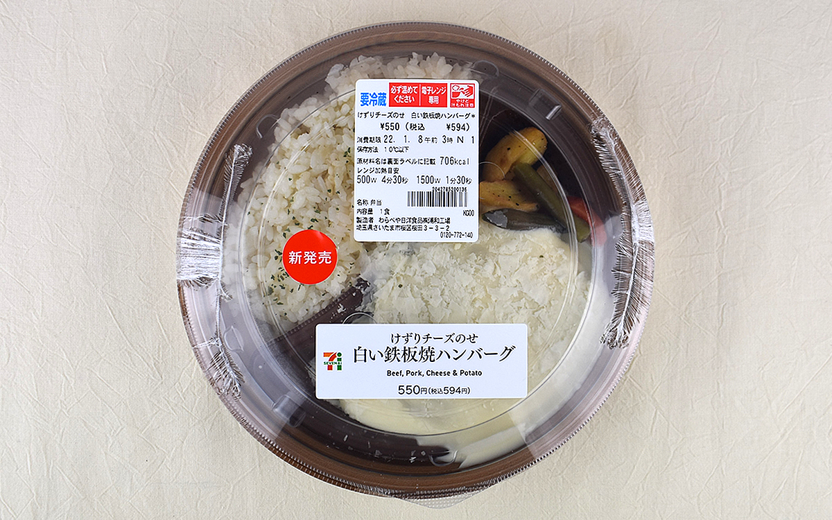 ●「けずりチーズのせ 白い鉄板焼ハンバーグ」(セブン-イレブン)
