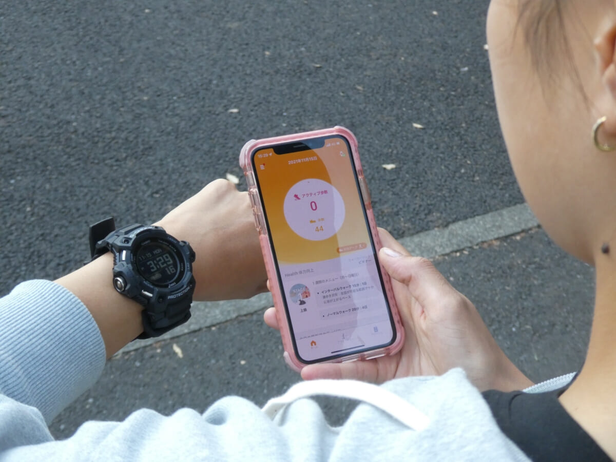今回は、スマートフォンアプリ「Walkmetrix」と専用G-SHOCK「GSR-H1000」本体のみで使えるので、グッと利用しやすくなりました。ウォーキングというと、なんとなくランニングより運動強度が落ちるイメージがありますが、やり方によってはランニングと同等以上の運動効果が得られます。運動不足の方は、まずウォーキングがおすすめです!